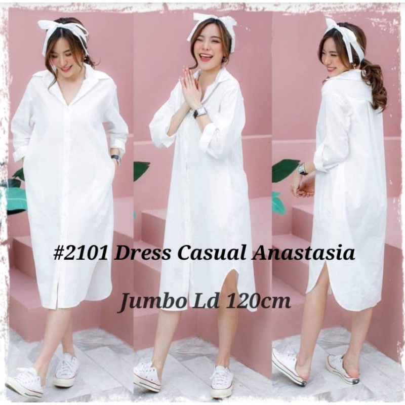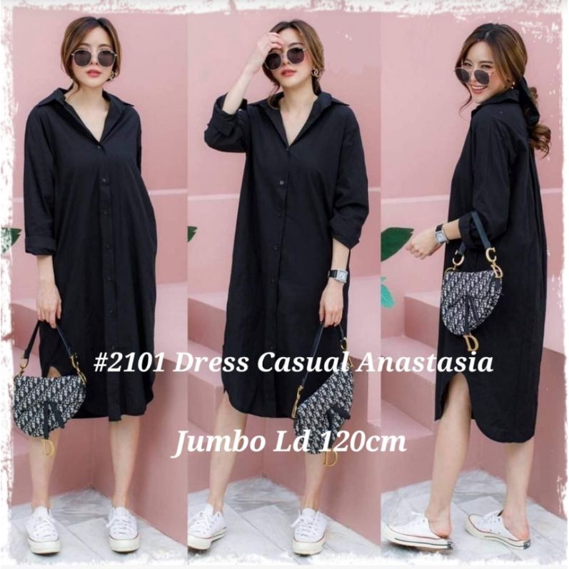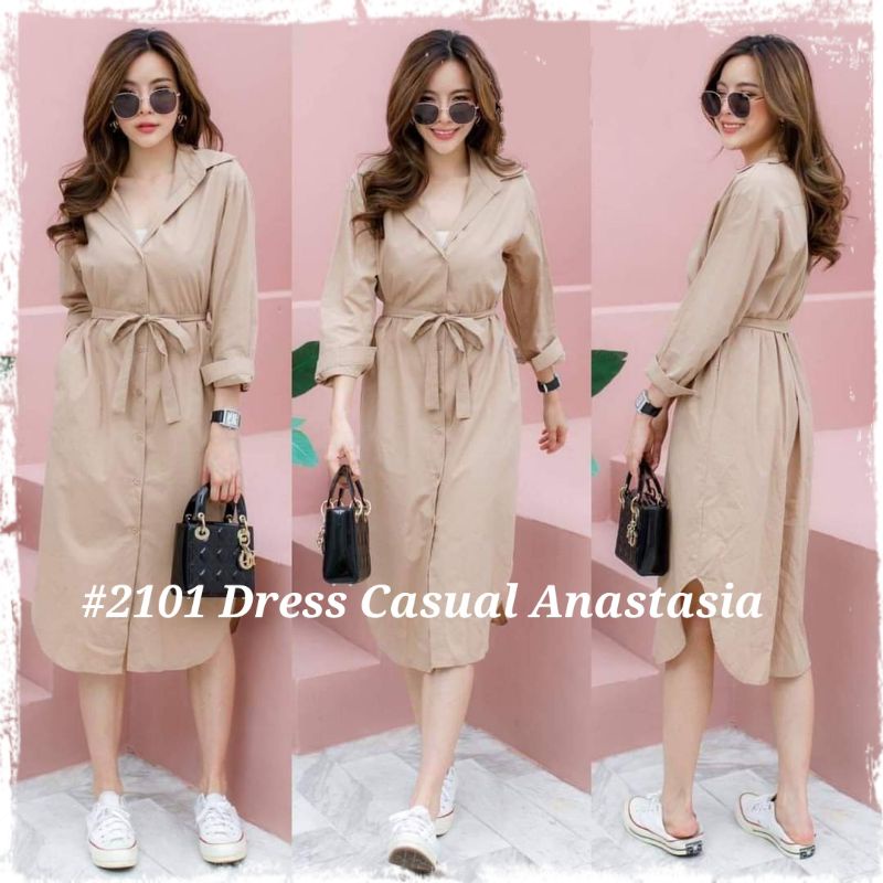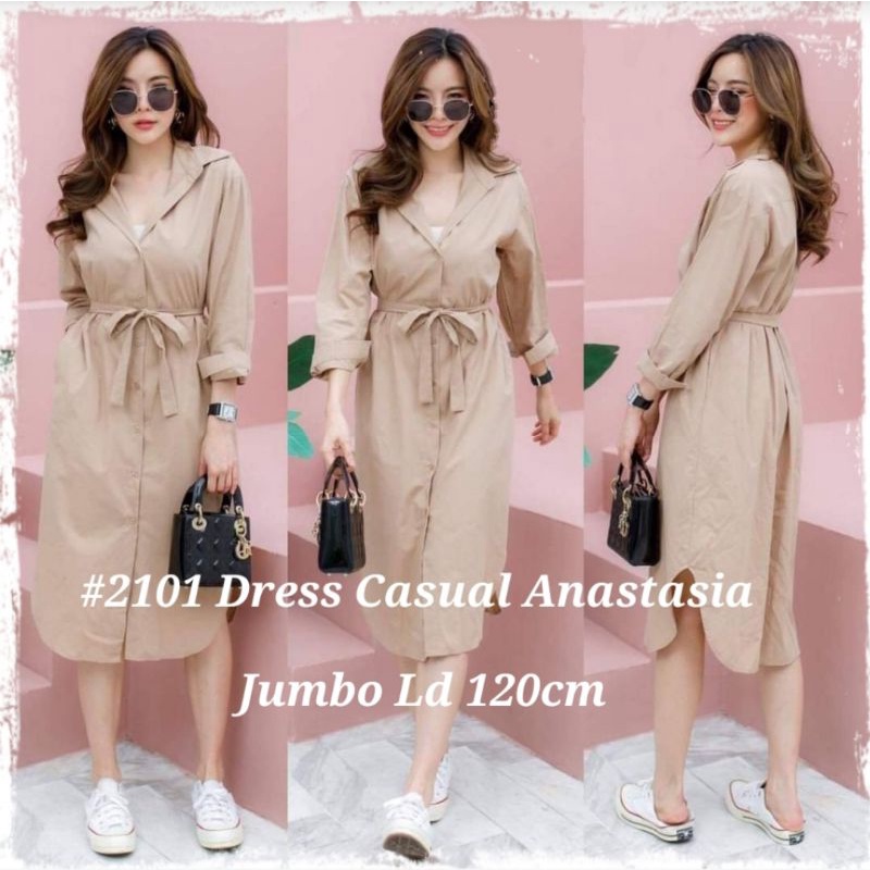 Harga 4B #2101 Dress Casual Anastasia (dapat tali belt) READY STOCK UKURAN REGULER DAN JUMBO