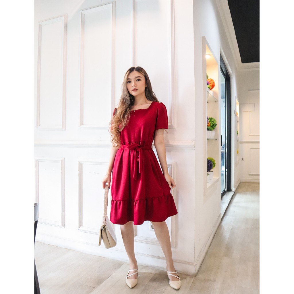 COTTONBELLS CASUAL DRESS WANITA EMMA RUFFLE SQUARE COMFY MIDI (CV - D 3622)