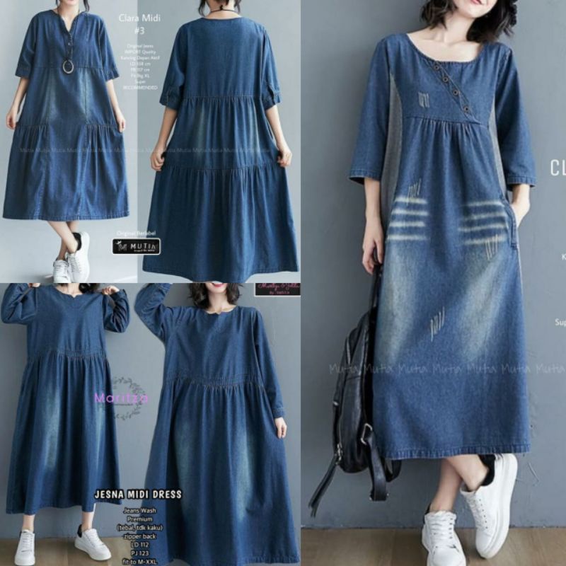 midi dress jeans jumbo - dress jeans jumbo terbaru oversize dress casual