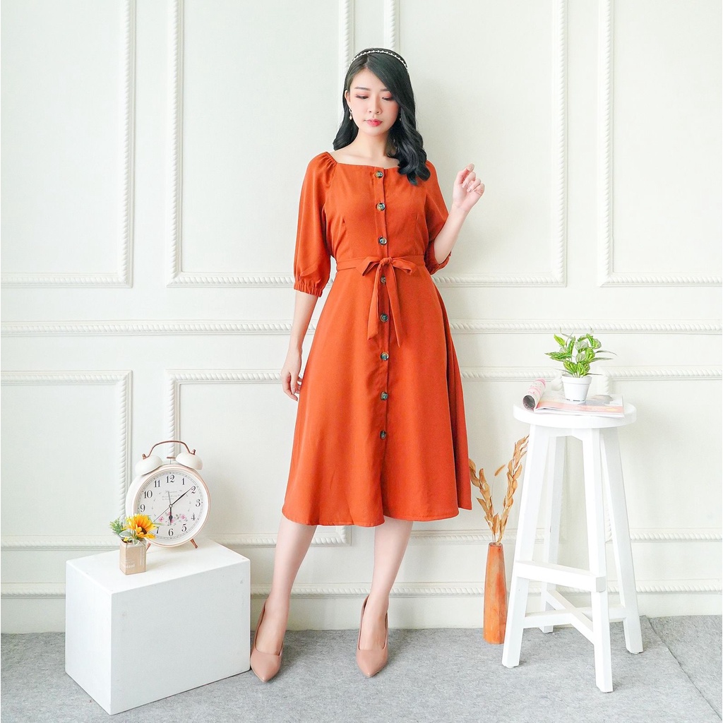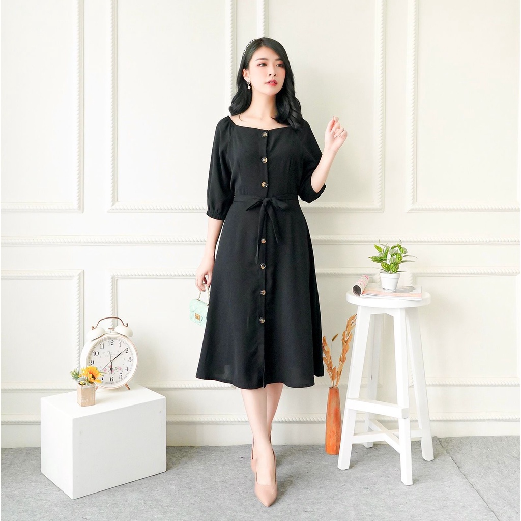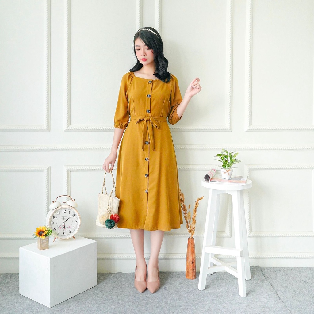 Alasan kenapa harus beli COTTONBELLS CASUAL DRESS WANITA EMILY BUTTON PLAID SQUARE MIDI (CV - D 4068) sekarang