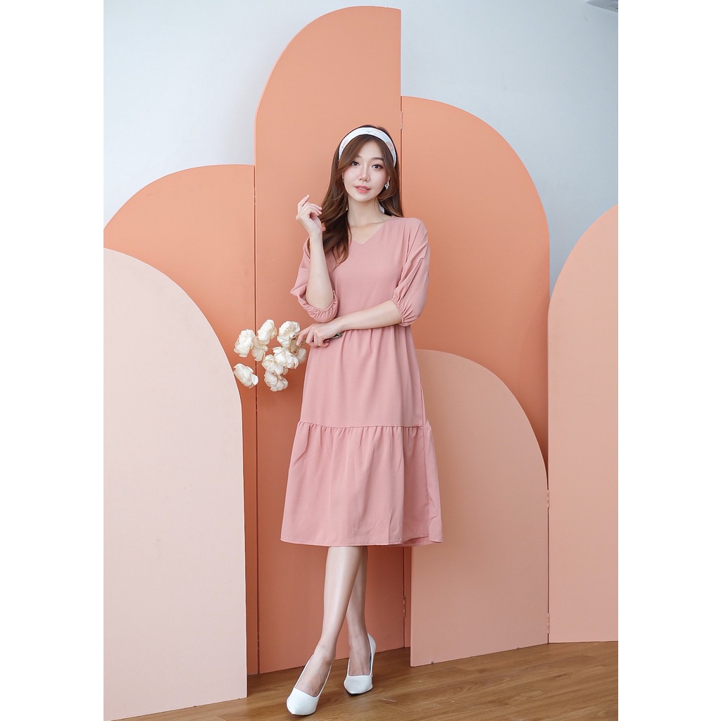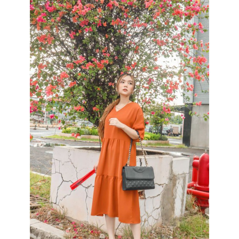 COTTONBELLS CASUAL DRESS WANITA KARYL RUFFLE TIED MIDI (AR - D 4152)