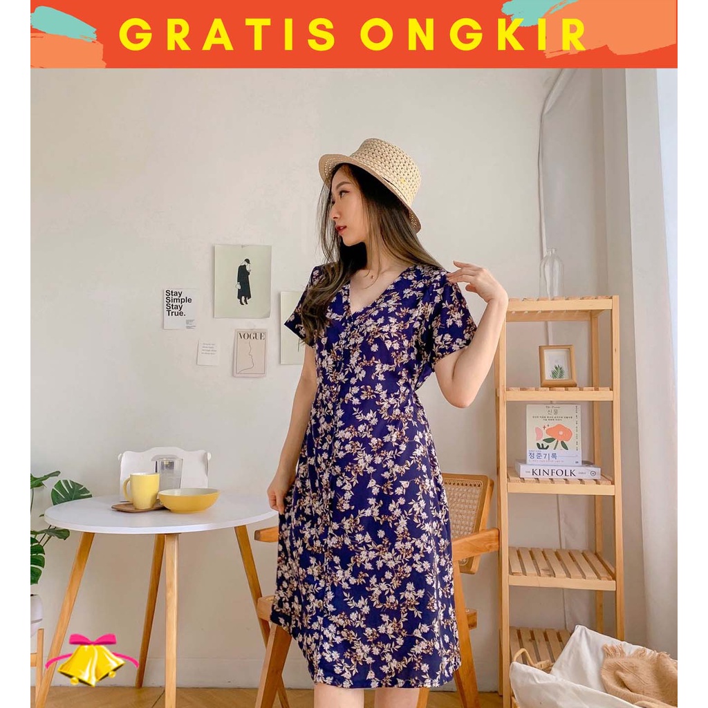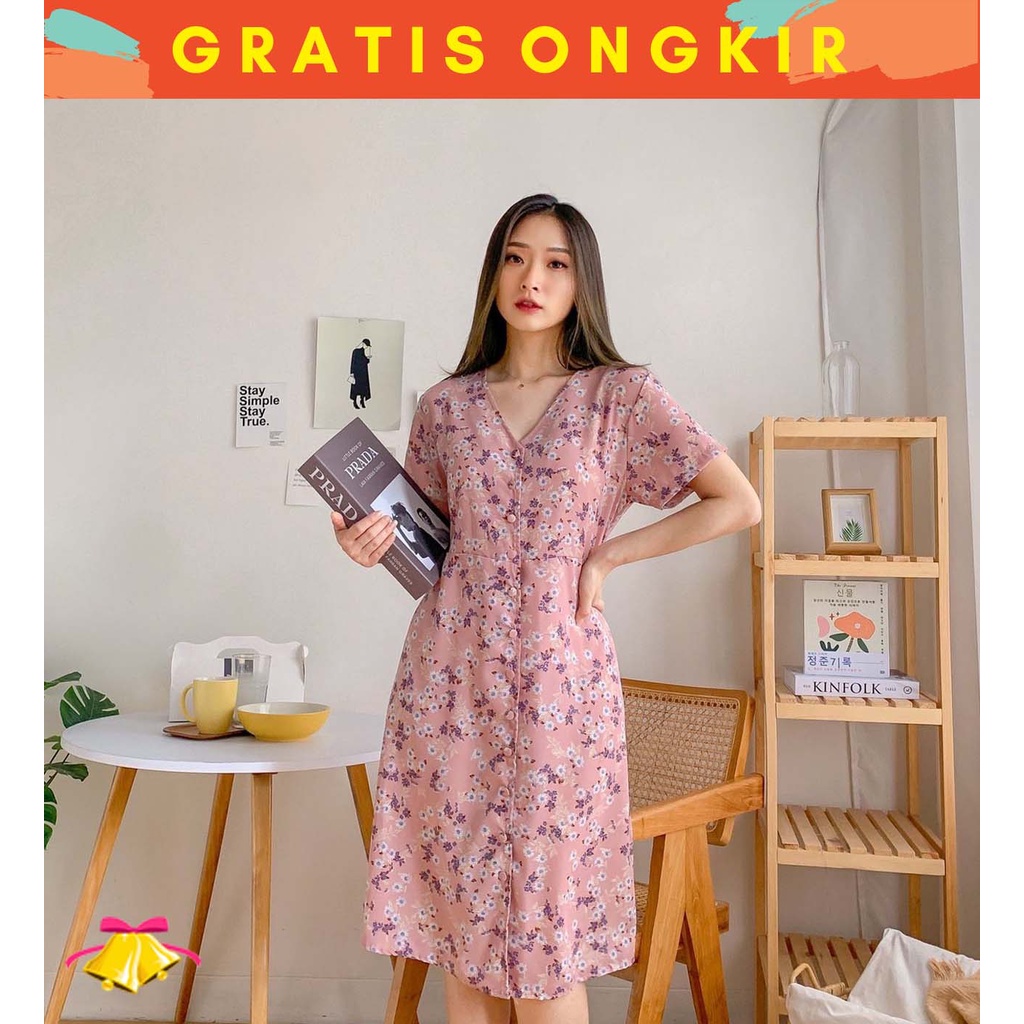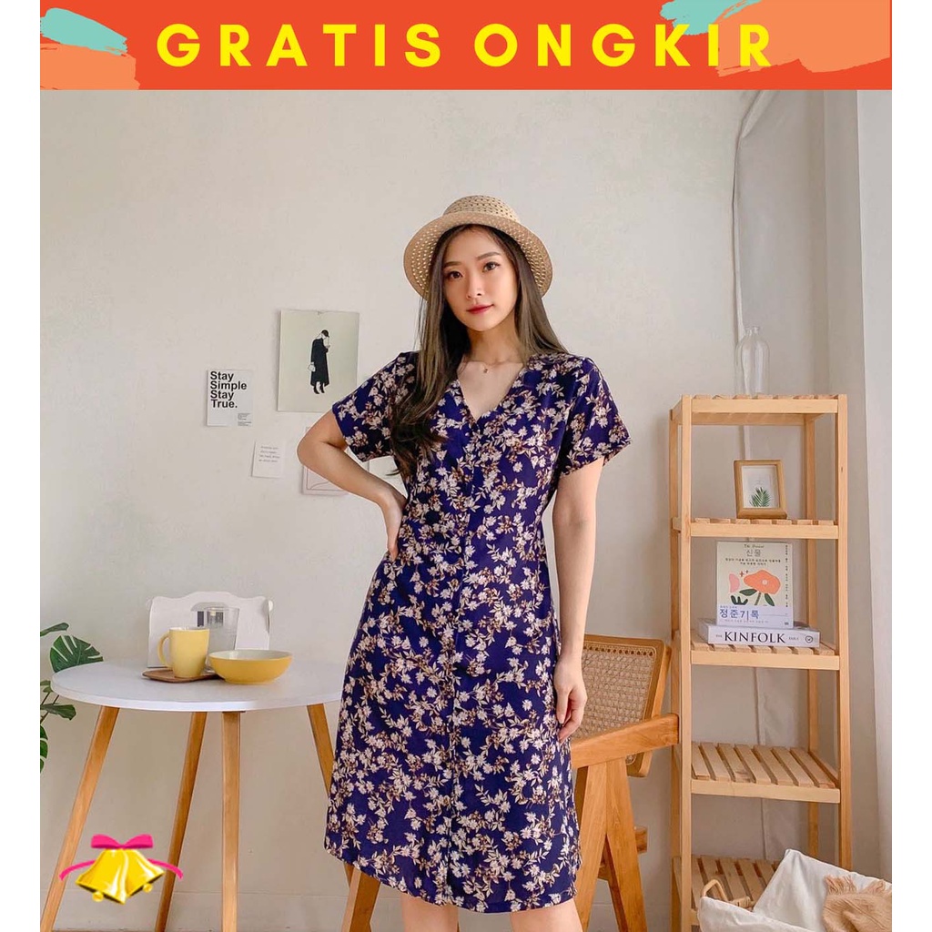 Alasan kenapa harus beli COTTONBELLS CASUAL DRESS WANITA FARICA BUTTON FLORAL PLAID MIDI (CV - D 4503) sekarang