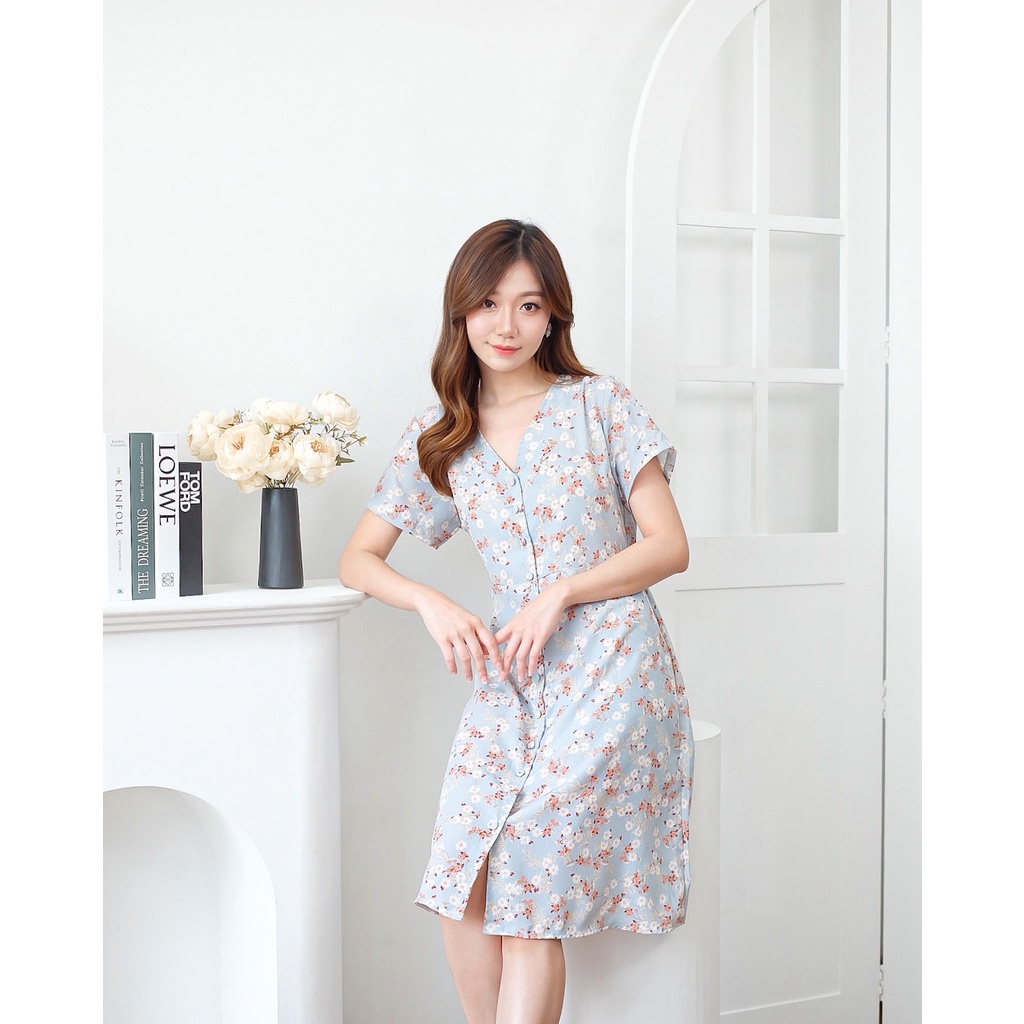 Kelebihan - Kelebihan membeli COTTONBELLS CASUAL DRESS WANITA FARICA BUTTON FLORAL PLAID MIDI (CV - D 4503) di Toko ini