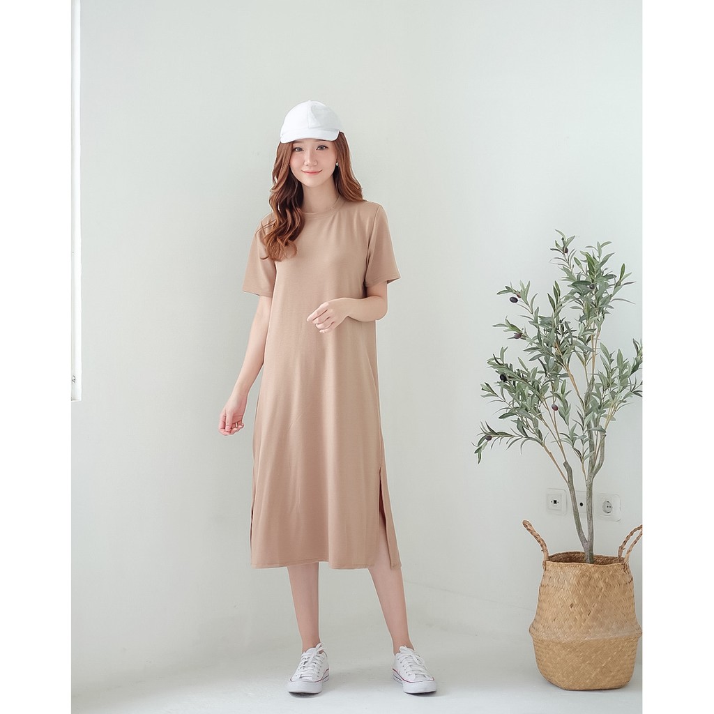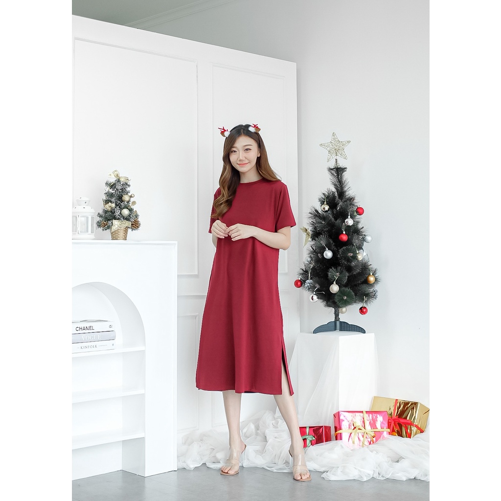 Harga COTTONBELLS CASUAL DRESS WANITA OLIVIA LOOSE DAILY SLIT ( GT - D 3305 )