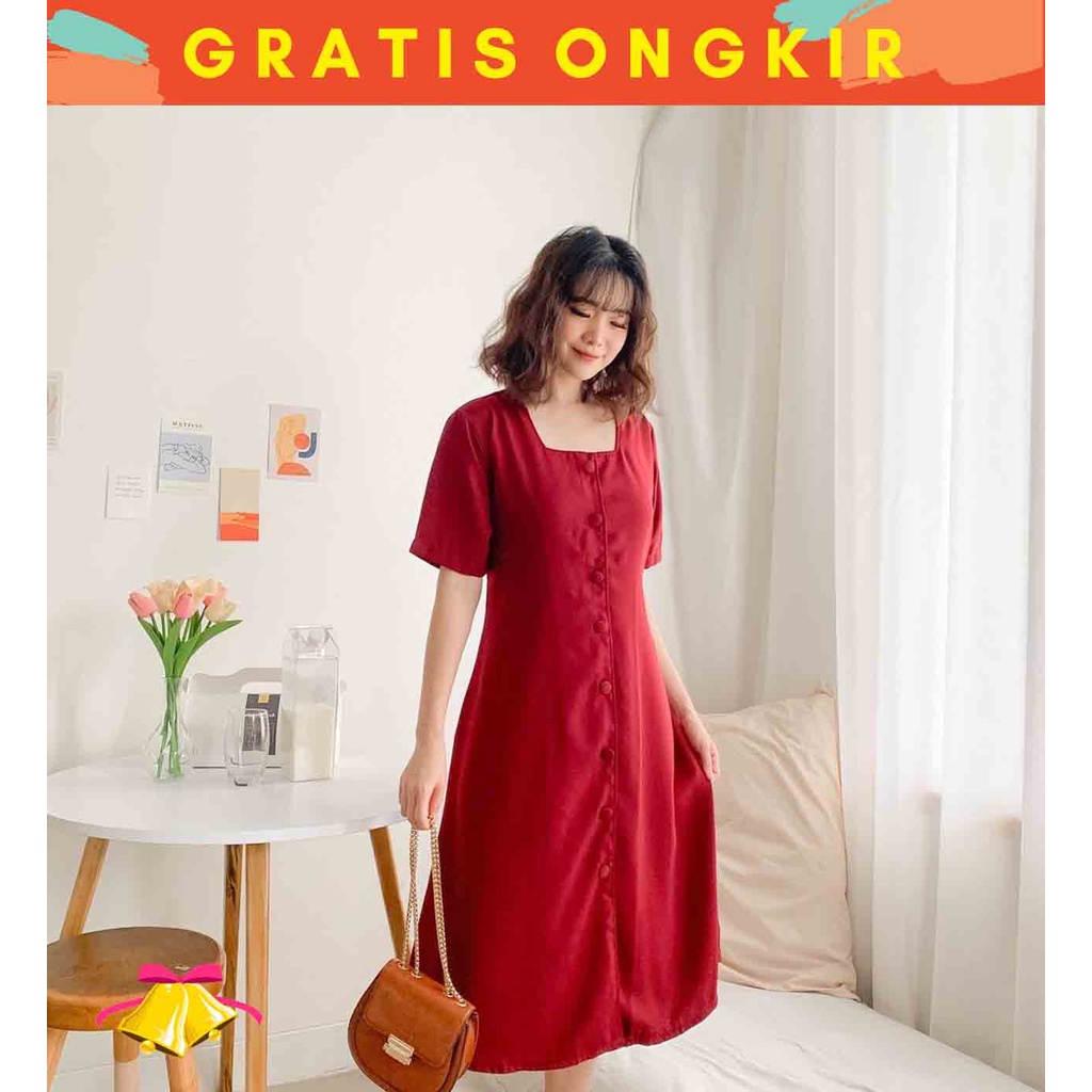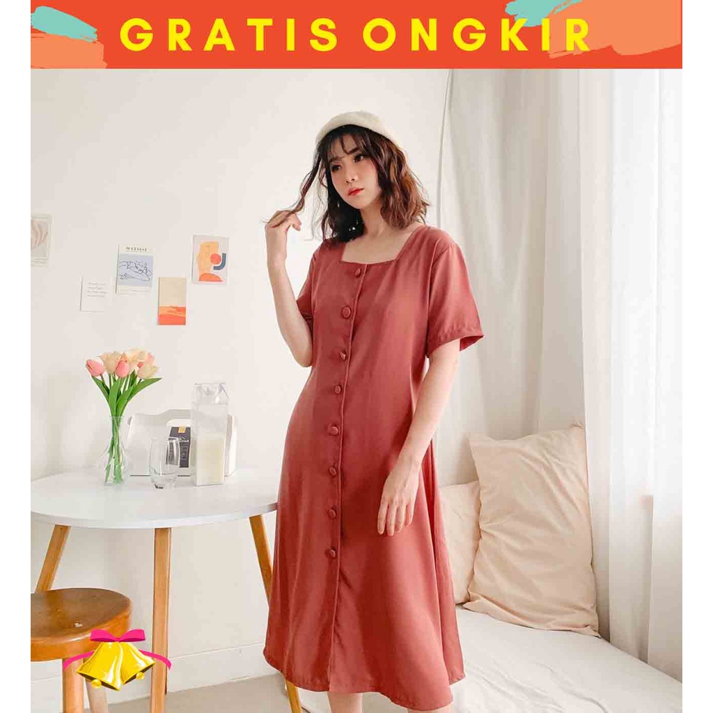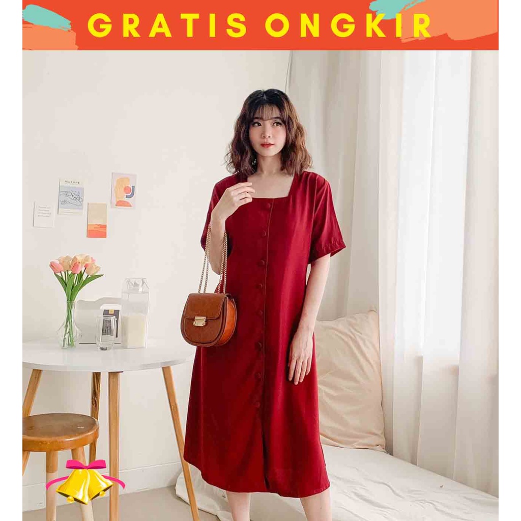 Alasan kenapa harus beli COTTONBELLS CASUAL DRESS WANITA AMERA SQUARE BUTTON PLAID TIED MIDI (CV - D 4446) sekarang