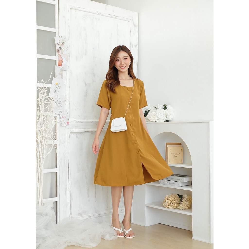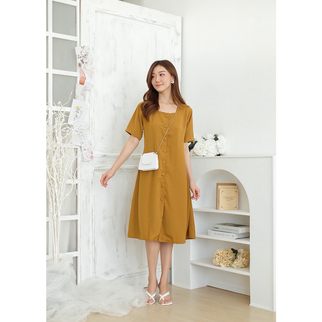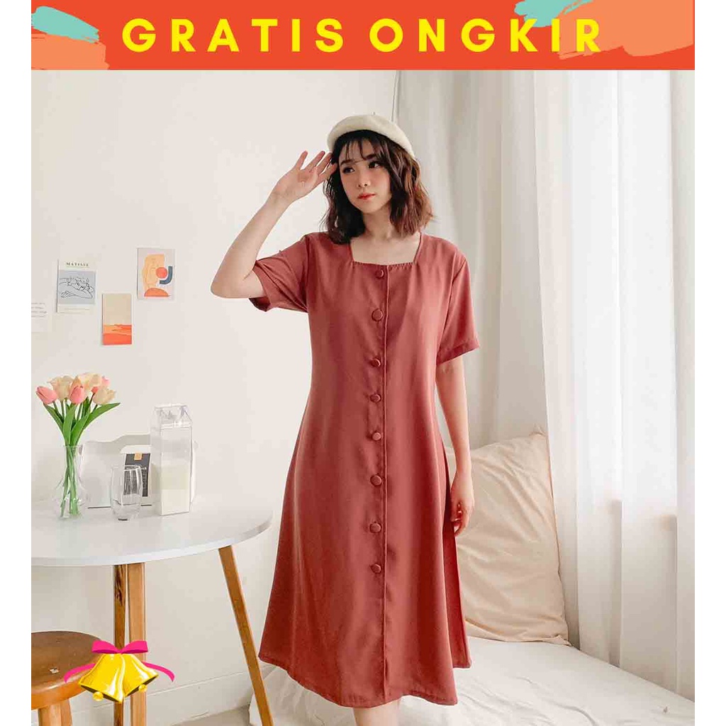 Alasan kenapa harus beli COTTONBELLS CASUAL DRESS WANITA AMERA SQUARE BUTTON PLAID TIED MIDI (CV - D 4446) sekarang