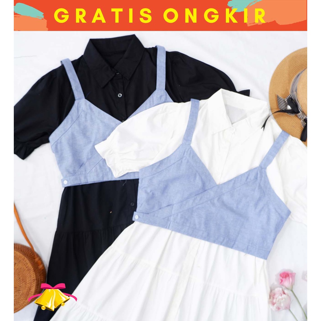 Alasan kenapa harus beli COTTONBELLS CASUAL DRESS WANITA KATRINA BUTTON RUFFLE MIDI (SP - D 3963) sekarang