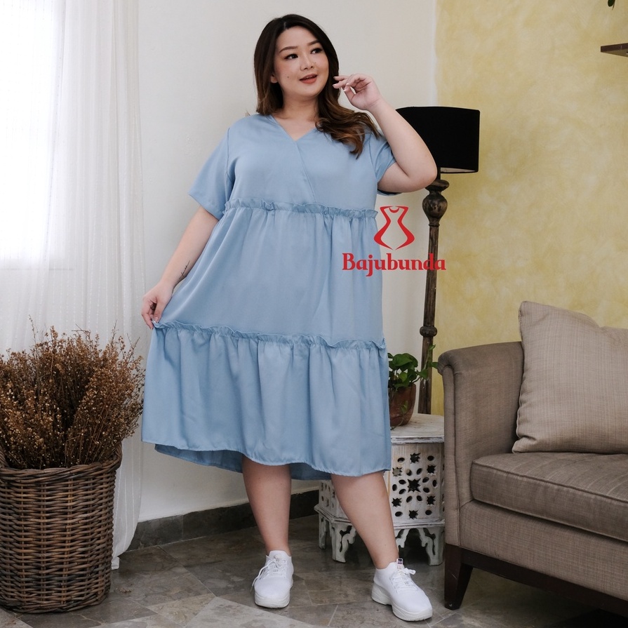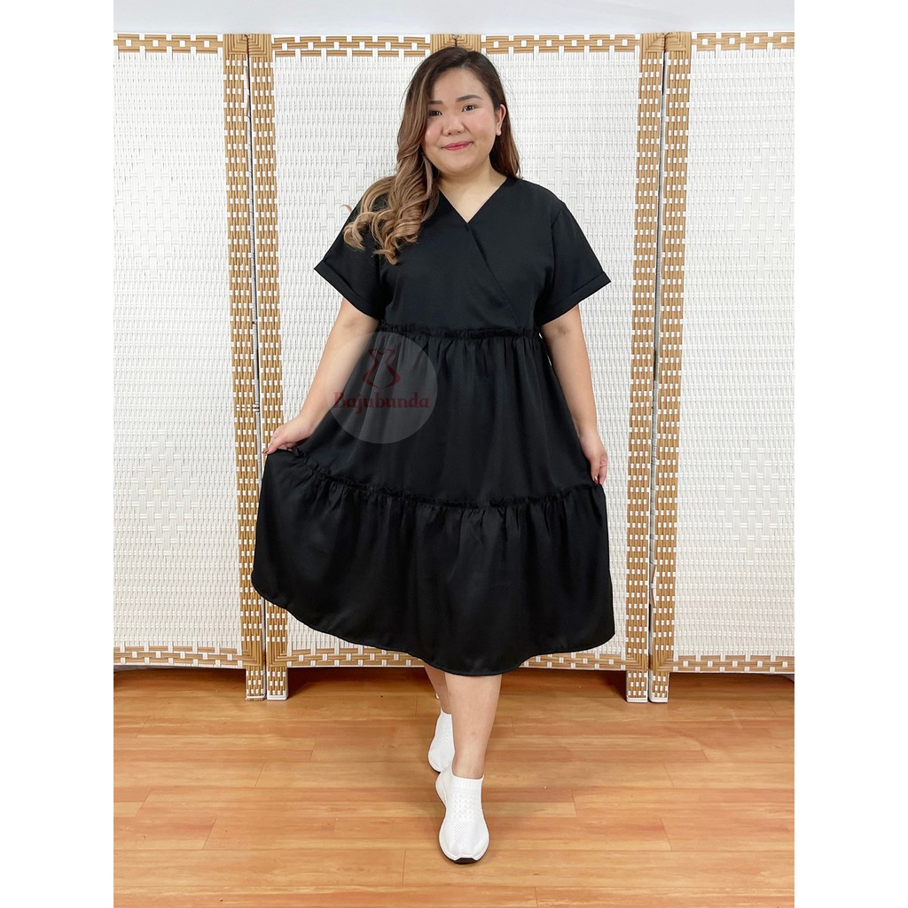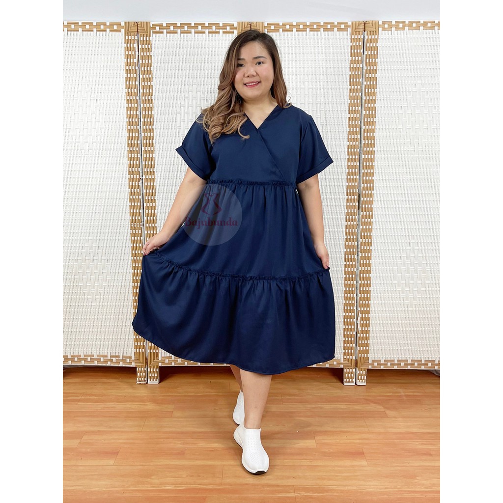 DRESS JUMBO BIG SIZE BAJU WANITA LD 120 LENGAN PENDEK POLOS KHLOE