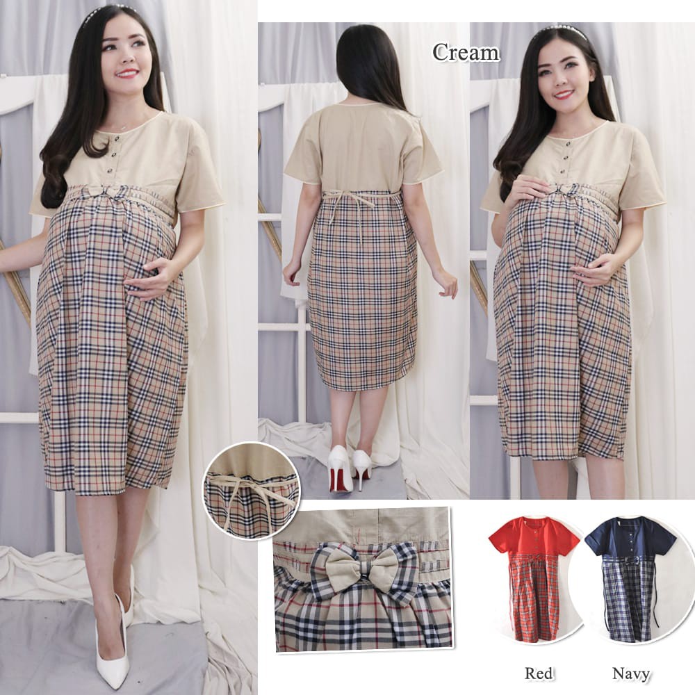 TERMURAH !!! Dress Wanita Hamil dan Busui kotak kotak-955 - Zianka Shop