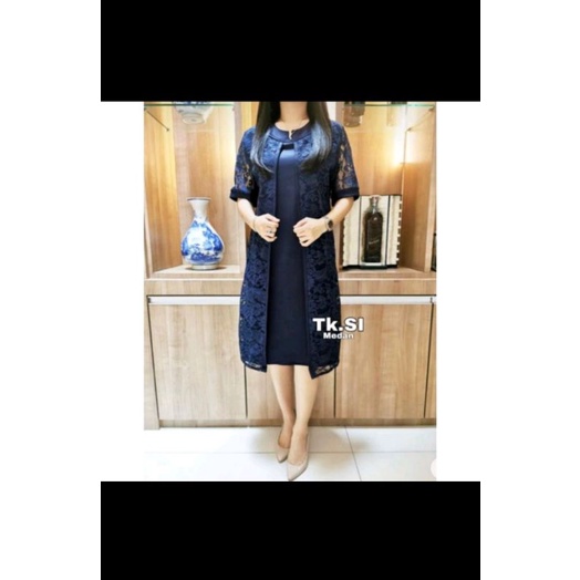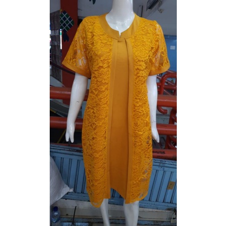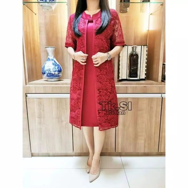Harga DRESS READY UKURAN M, L, XL, XXL, 3L, 4L, 5L LD88--125CM BAHAN SCUBA+BROKAT SUPER