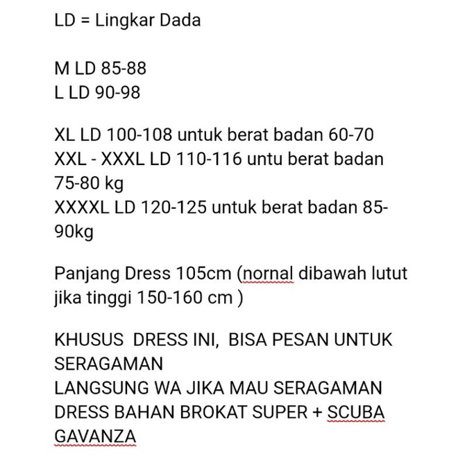 Rifan Juga punya 4 Produk lain terkait Produk DRESS READY UKURAN M, L, XL, XXL, 3L, 4L, 5L LD88--125CM BAHAN SCUBA+BROKAT SUPER yang perlu Anda lirik karena menarik, Produk itu adalah....