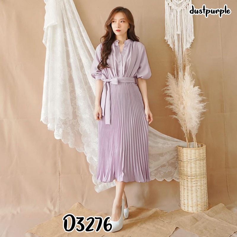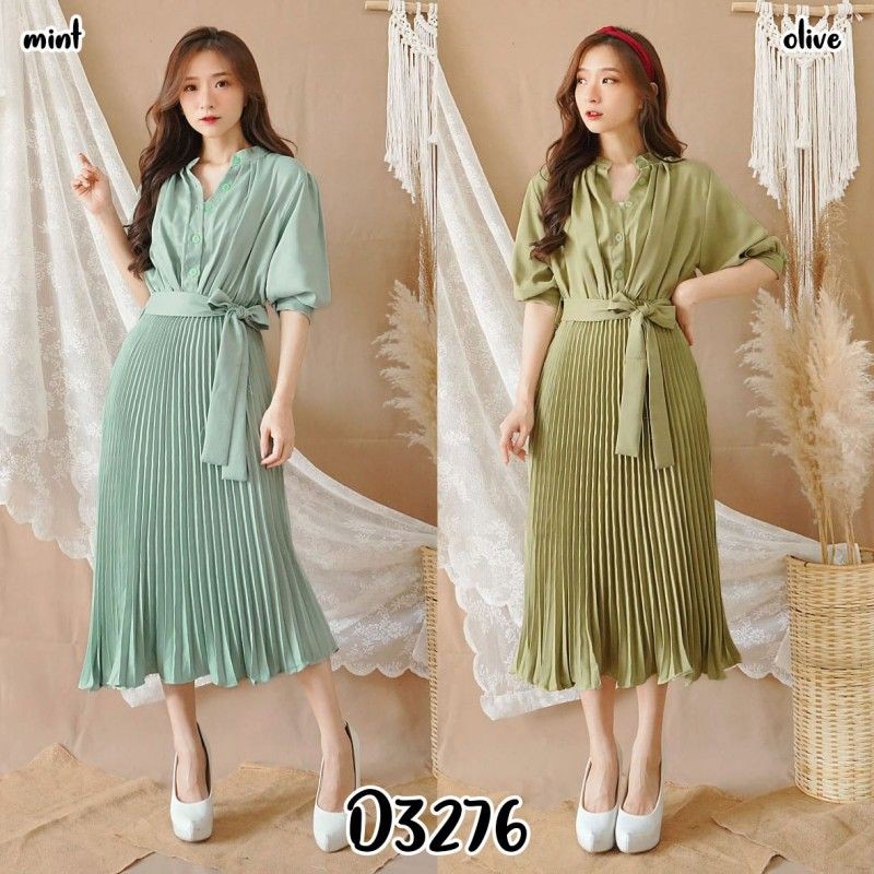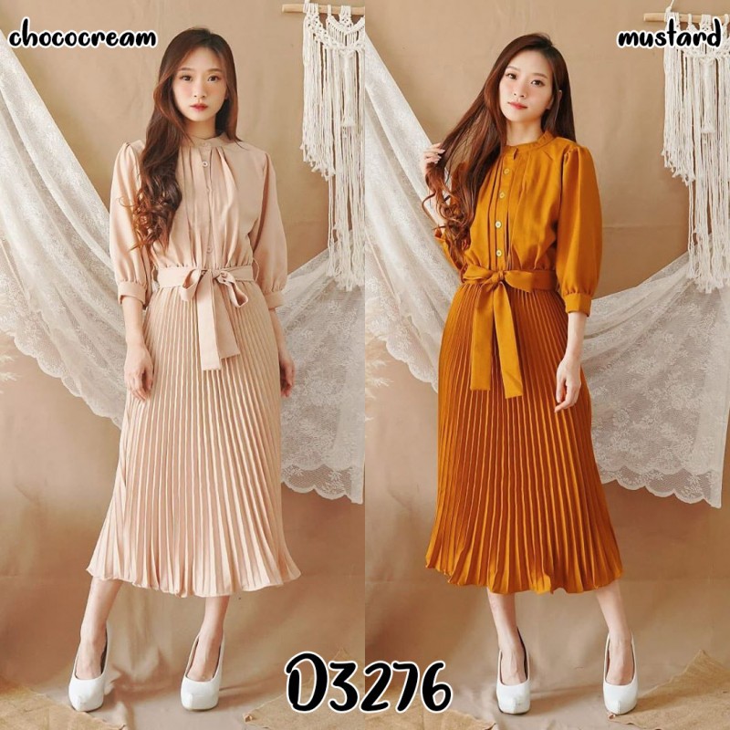 Kelebihan - Kelebihan membeli Dress wanita / cewek casual pleated midi dress bestseller pergi jalan hangout kekinian murah -3276 di Toko ini