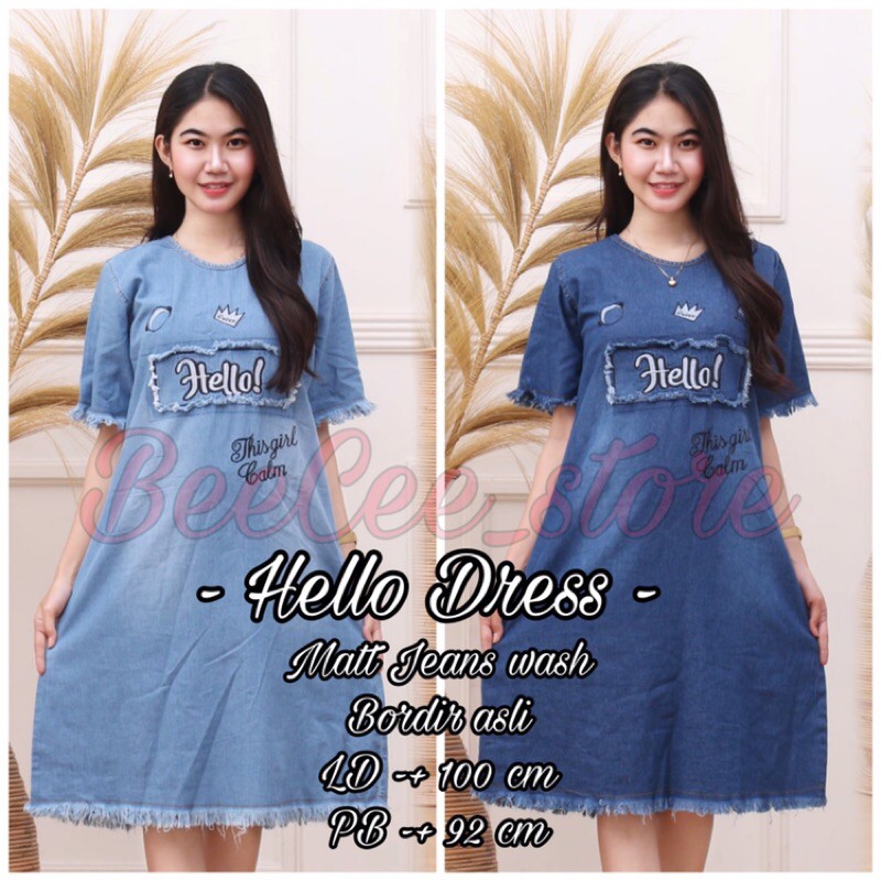 Dress Wanita Jeans casual . Hello dress jeans wash bordir . Dress bordir