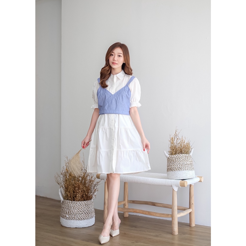 COTTONBELLS CASUAL DRESS WANITA KATRINA BUTTON RUFFLE MIDI (SP - D 3963)