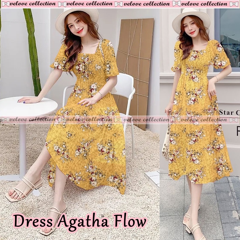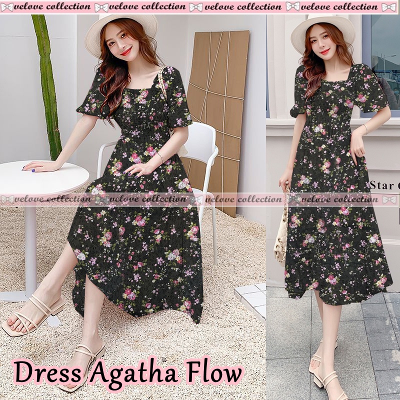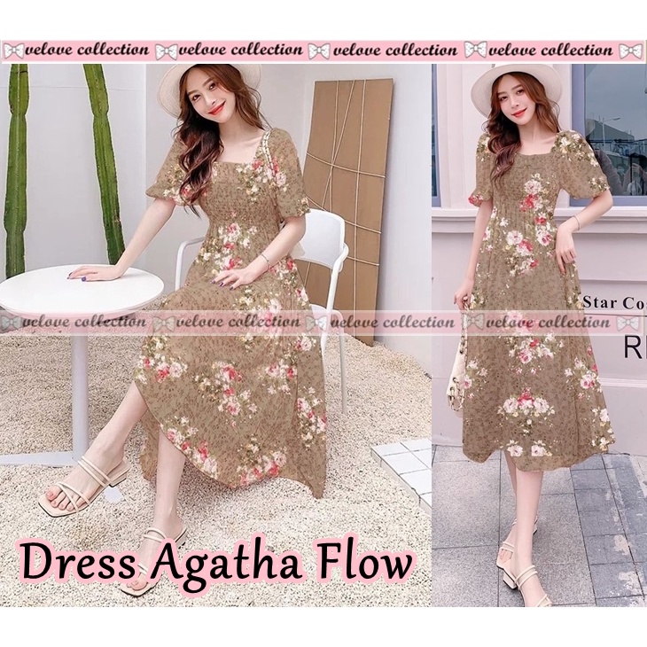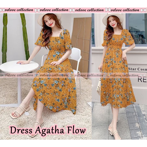 Kekurangan - Kekurangan membeli KALANTHA FASHION Dress Levina Dress Midi Sifon Lengan Pendek Motif Bunga Untuk Wanita Korean Style di Toko ini