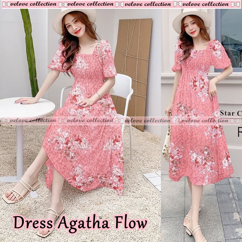 Harga KALANTHA FASHION Dress Levina Dress Midi Sifon Lengan Pendek Motif Bunga Untuk Wanita Korean Style