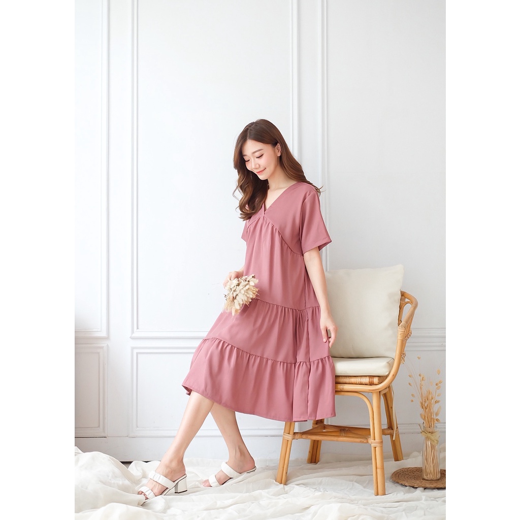 FELISHA - Daster Ruffle Polos Viral Kekinian Busui jumbo Dress Wanita Bumil By Shabrina