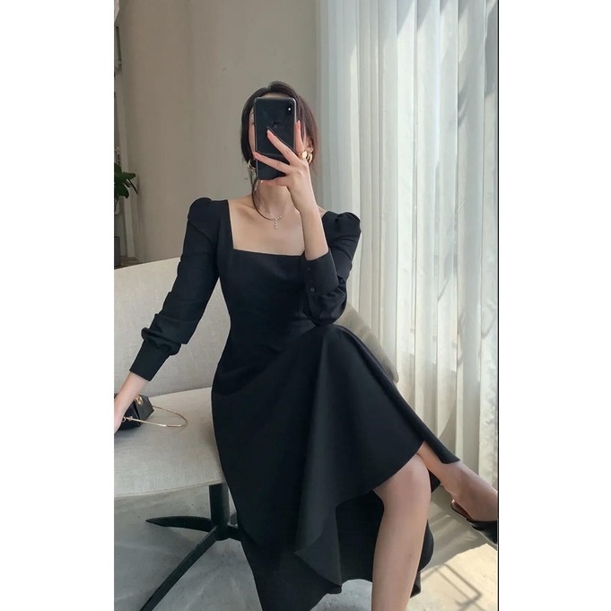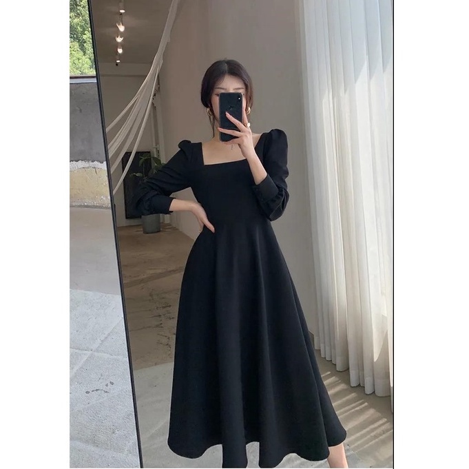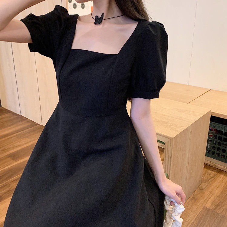 Alasan kenapa harus beli Korea style dress lengan pendek Gaun midi a-line hitam minimalis fashion sekarang