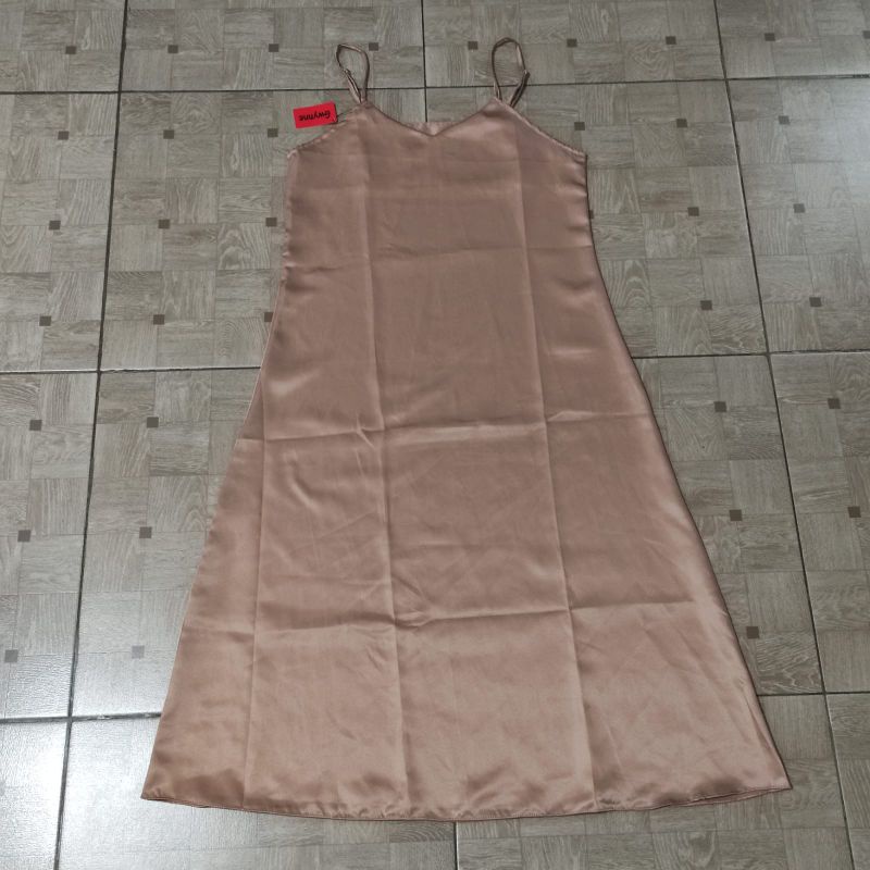 Harga Long Dress Satin Wanita Bahan Saten Tali kecil Korea