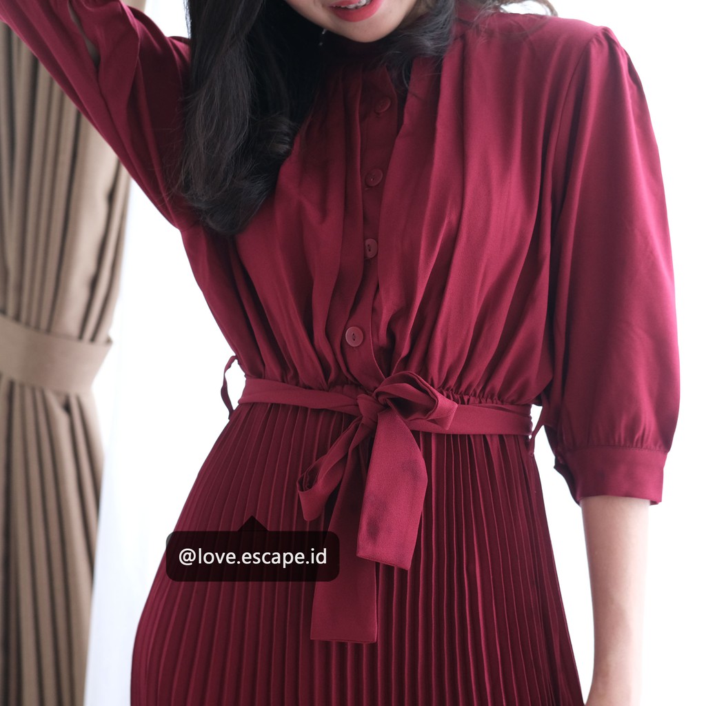 Harga LOVE ESCAPE Dress Plisket Korea/Dress Wanita Simple dan Anggun/Nami Pleated Dress