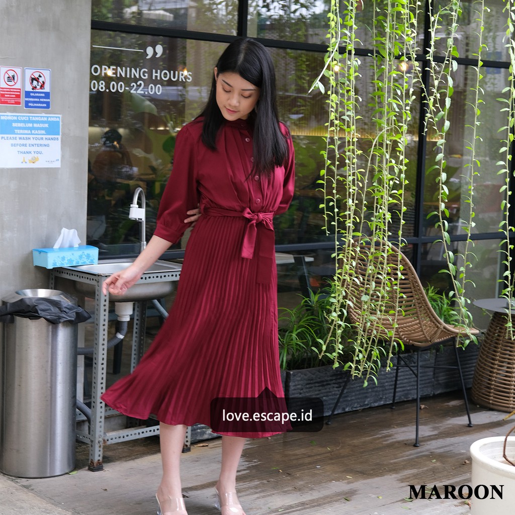 LOVE ESCAPE Dress Plisket Korea/Dress Wanita Simple dan Anggun/Nami Pleated Dress