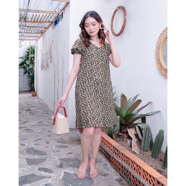 DRESS KERUT DADA RAYON PRINT | DRESS KORE