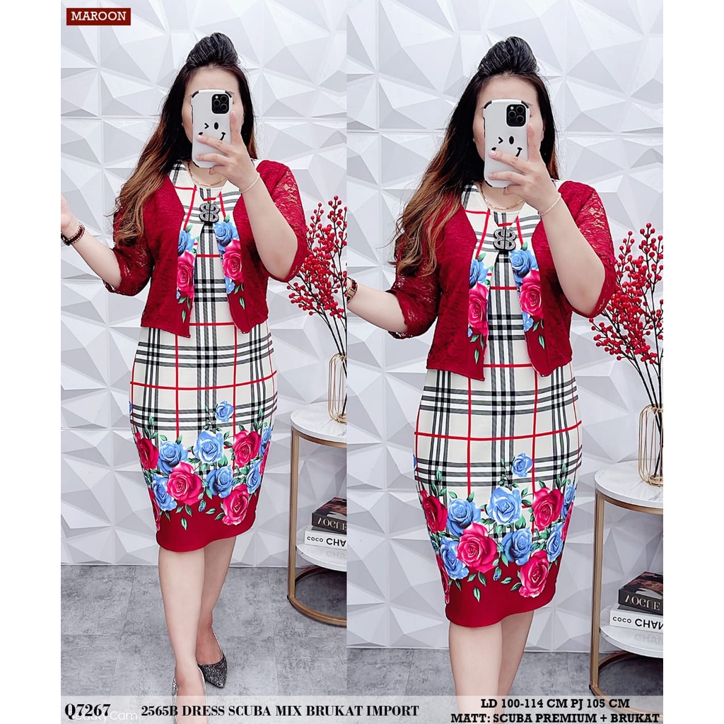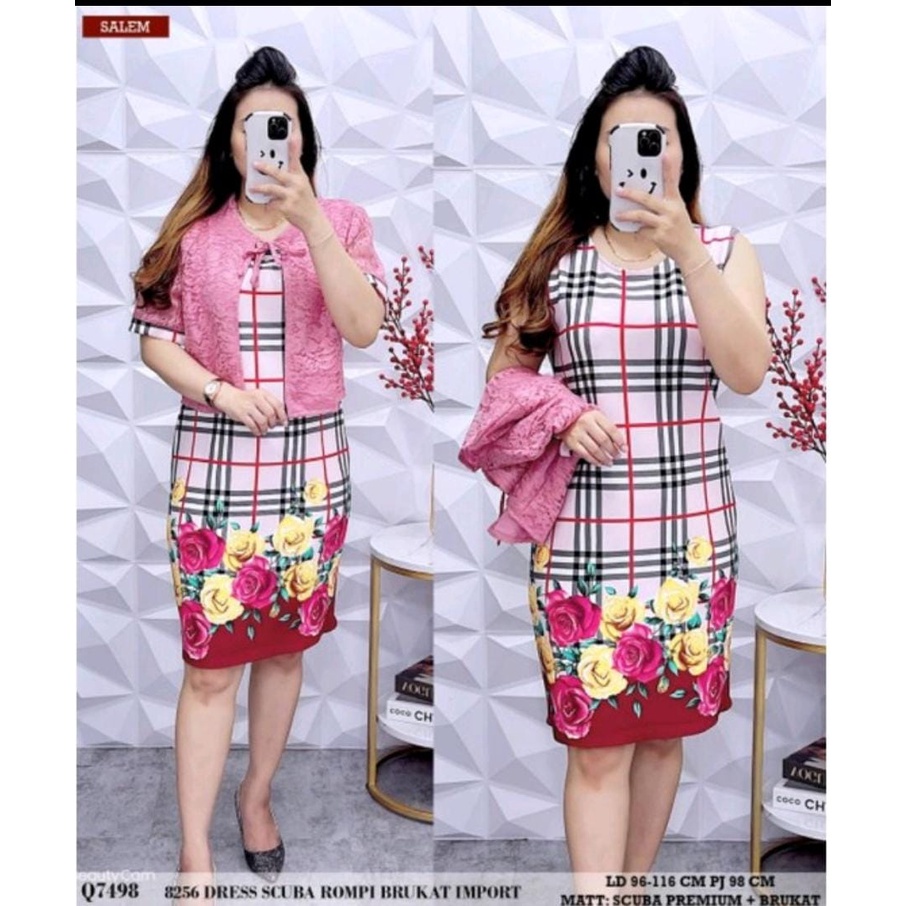 Harga New..Dress Meyta bahan scuba strech kombinasi brokat/Dress Wanita Formal Motif Blubery/WSI