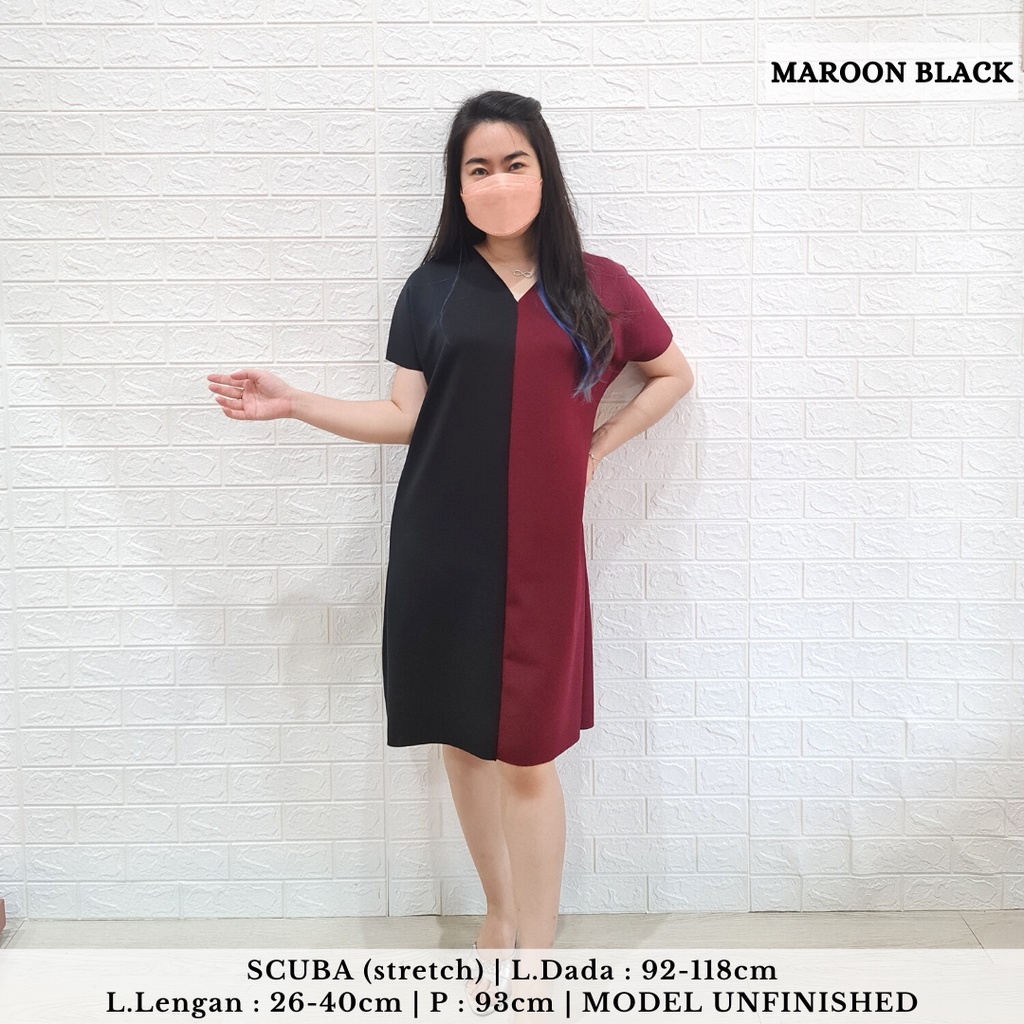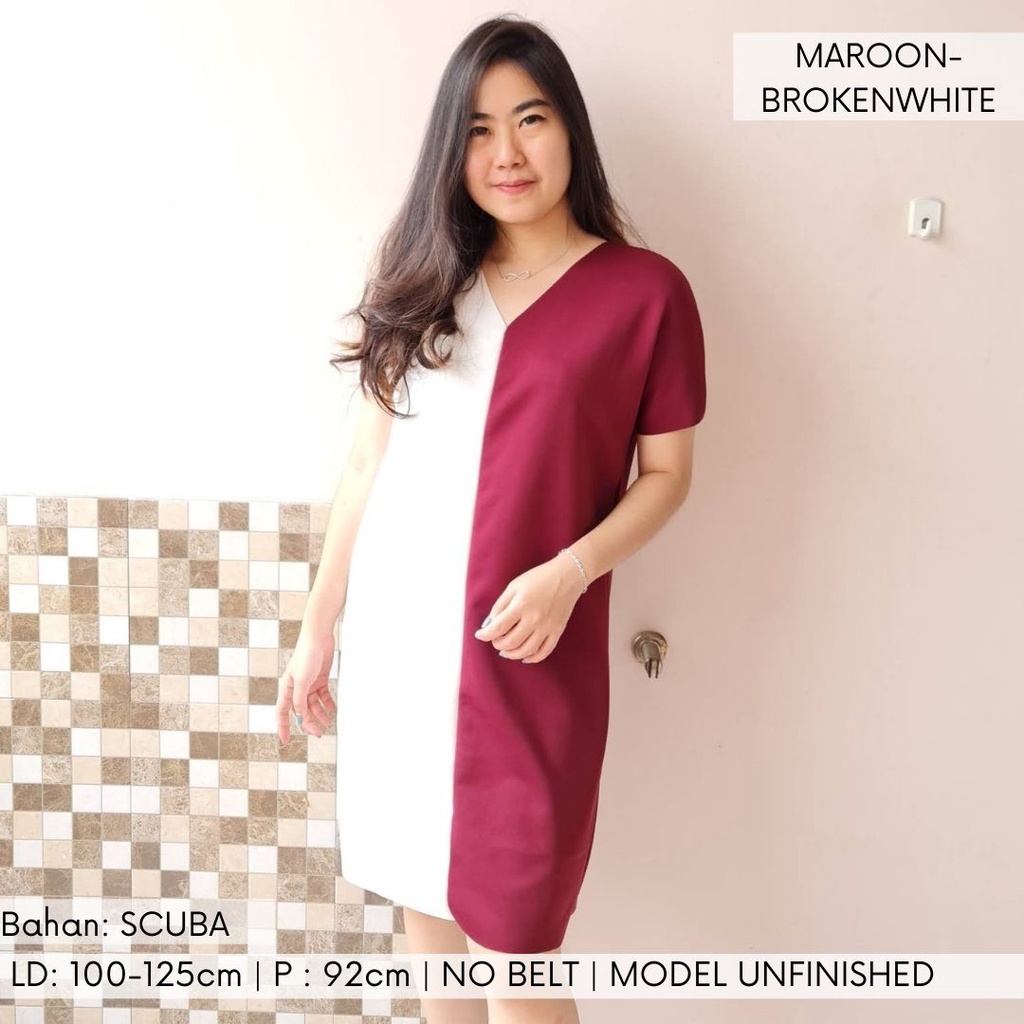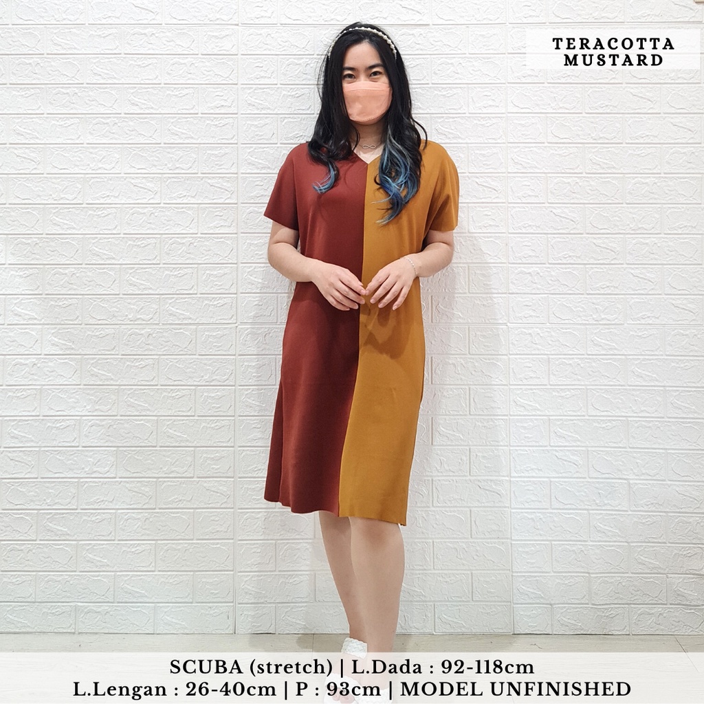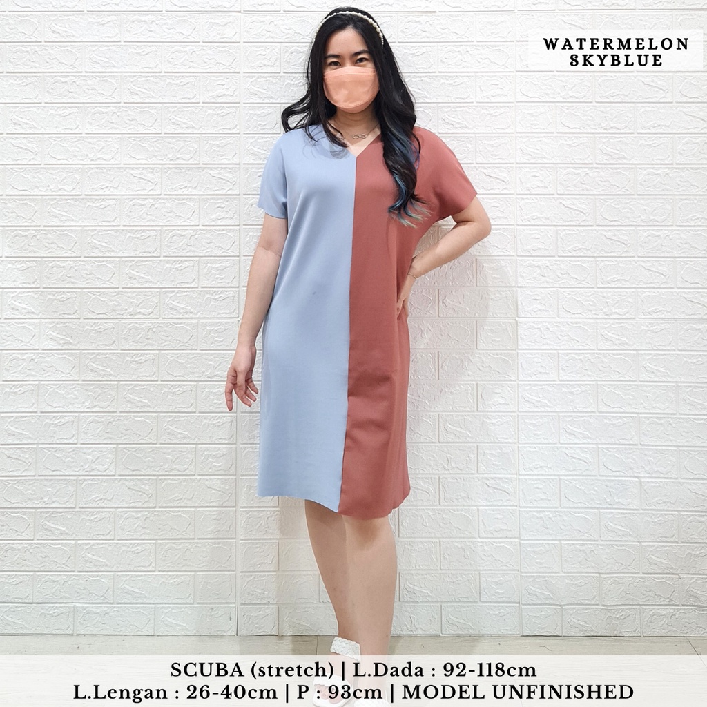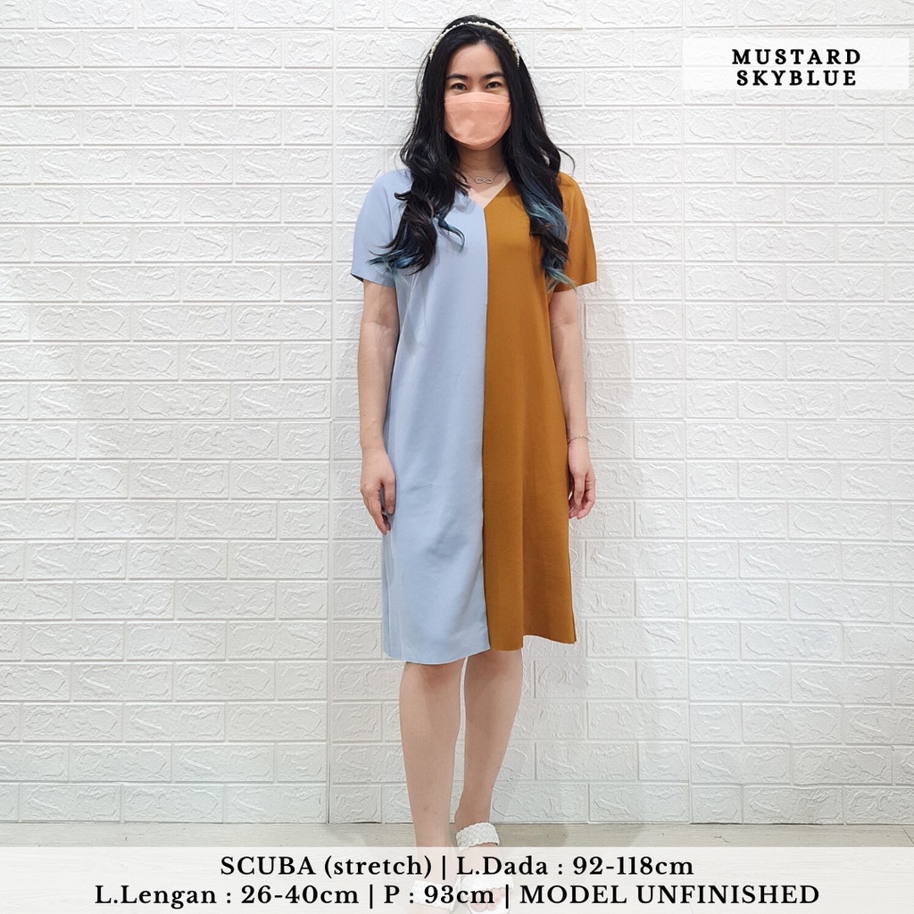 Harga READY 3115 KENO TWO TONE DRESS SCUBAMIDI DRESS BUMIL FRIENDLY