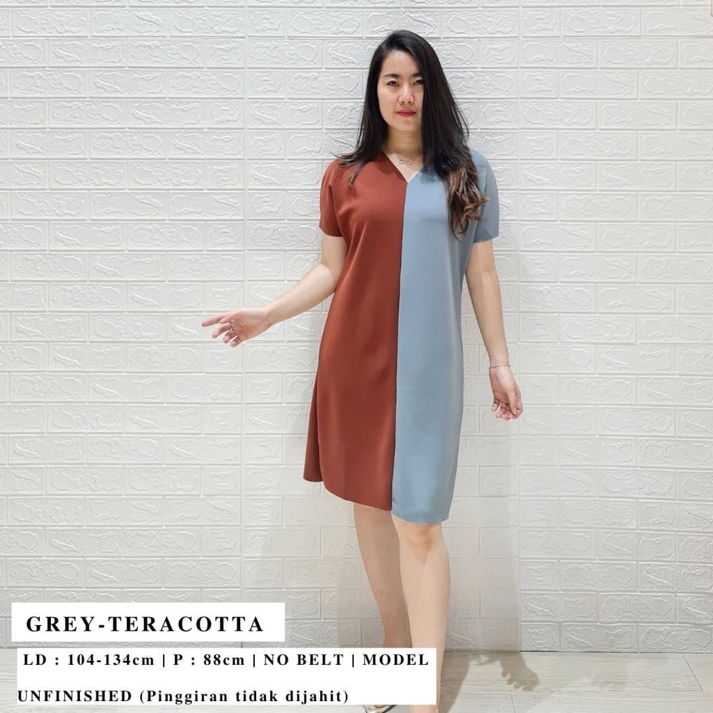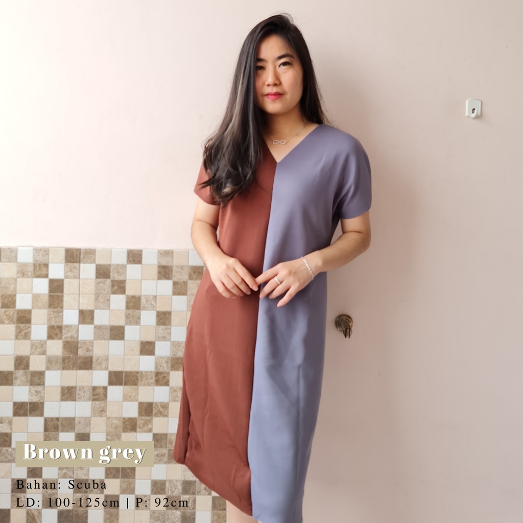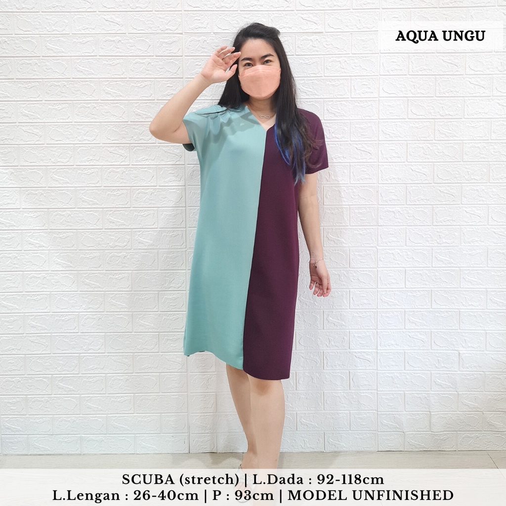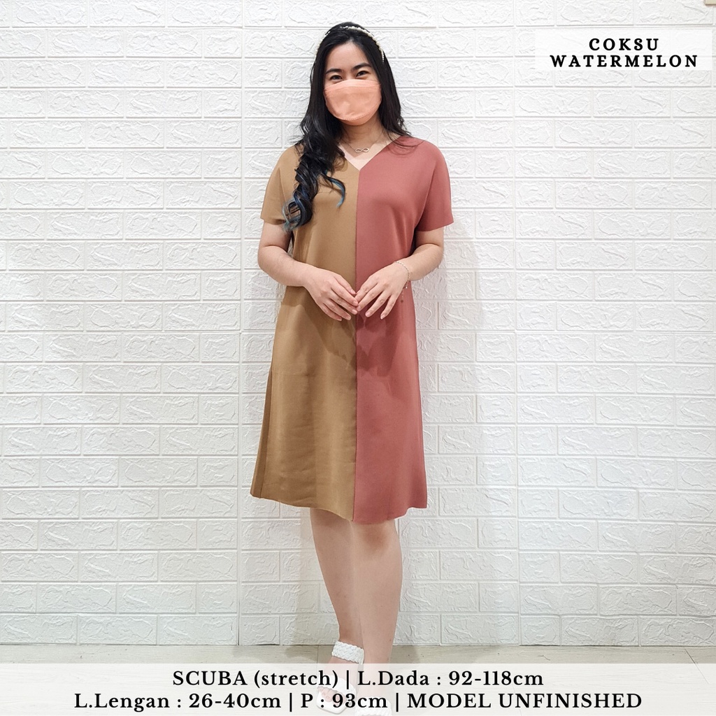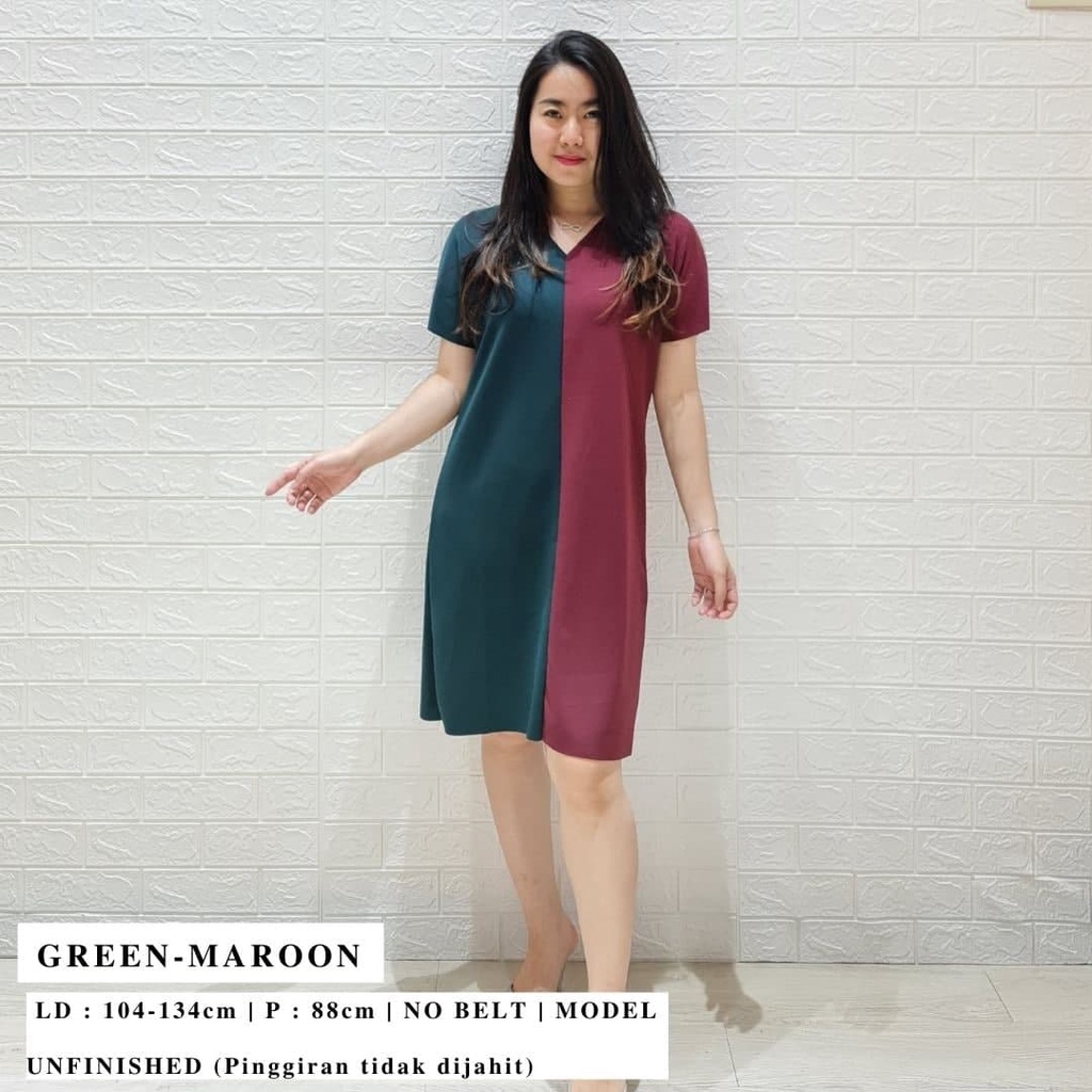 Harga READY 3115 KENO TWO TONE DRESS SCUBAMIDI DRESS BUMIL FRIENDLY
