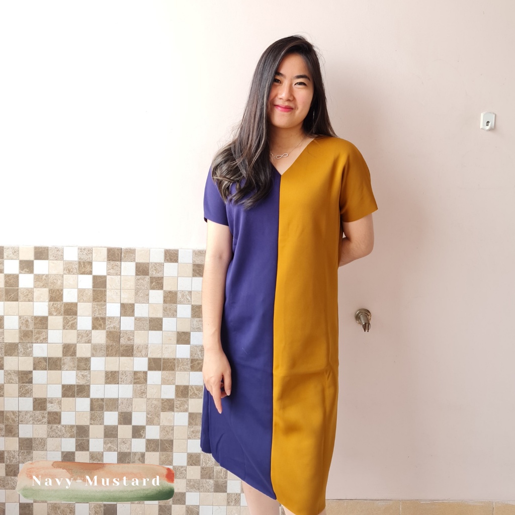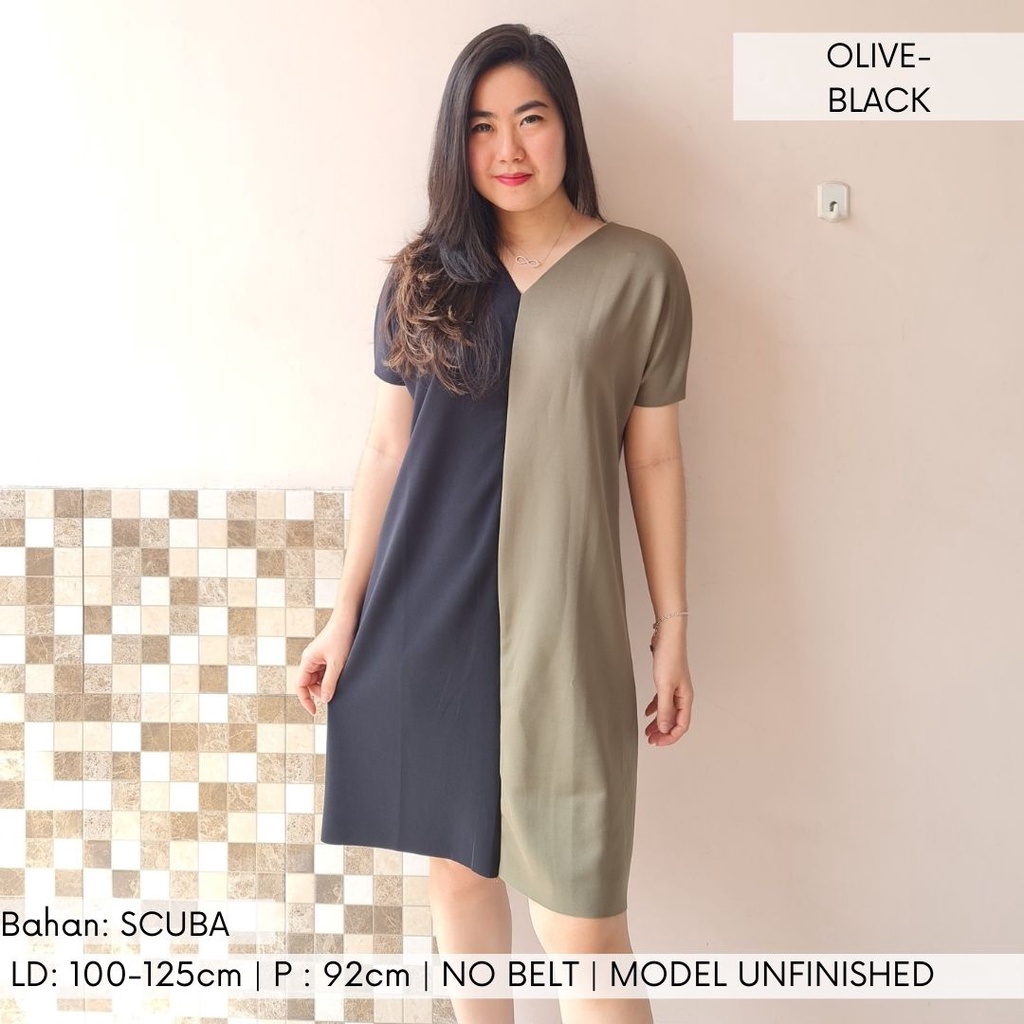 Kelebihan - Kelebihan membeli READY 3115 KENO TWO TONE DRESS SCUBAMIDI DRESS BUMIL FRIENDLY di Toko ini