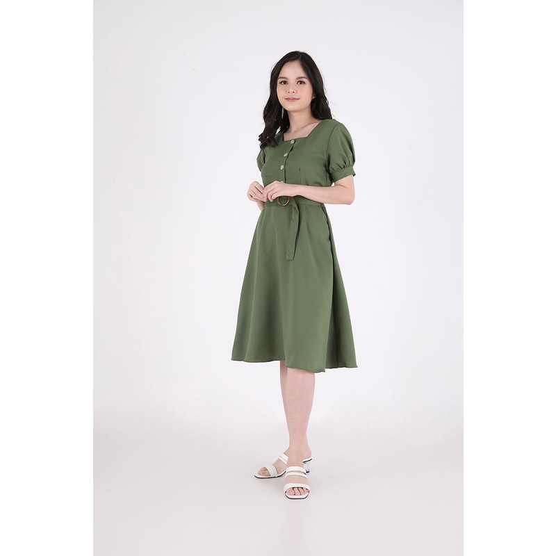 Harga Sorabel - Darne Plain Square Neck Dress / Dress Polos Wanita Lengan Pendek