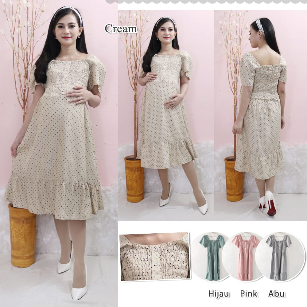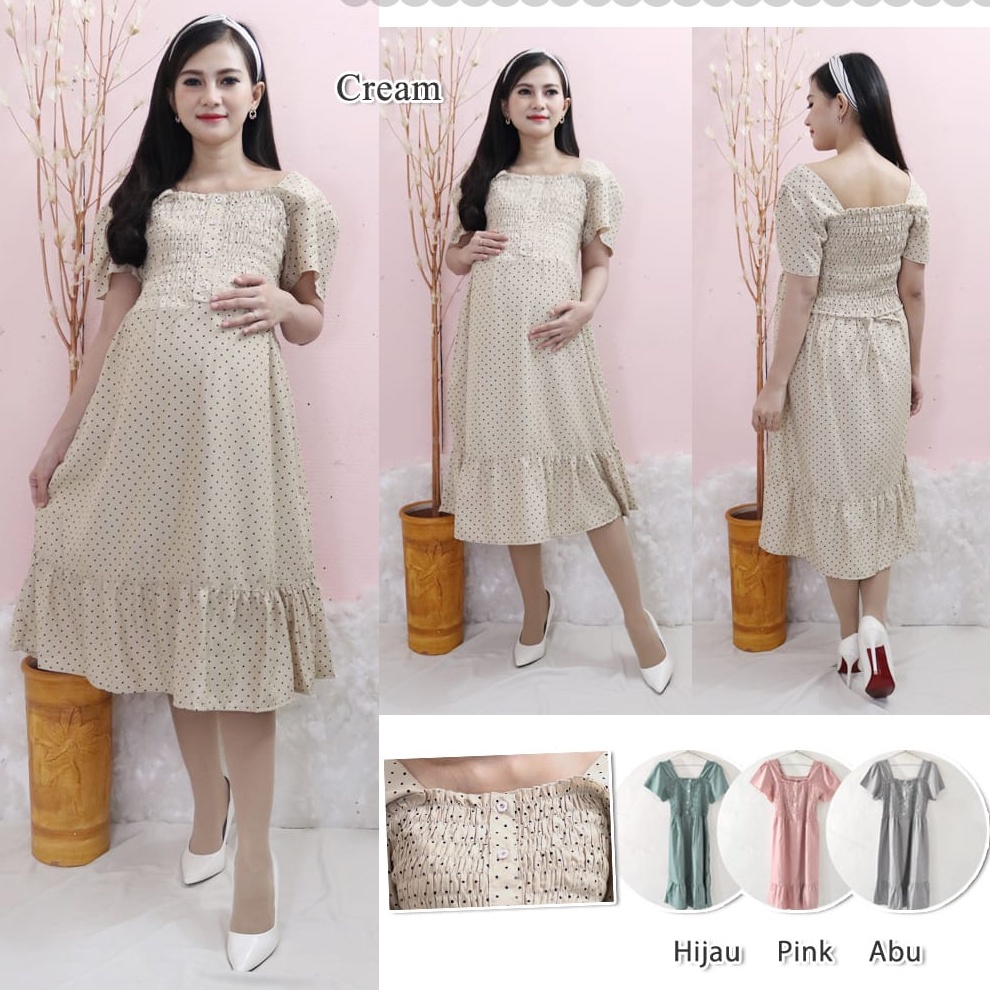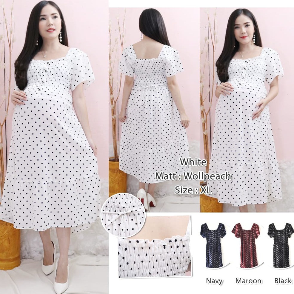 Harga Terbaru !!! Dress Wanita Hamil Cantik Motif Polka Dot Onde kerut-ZIANKA