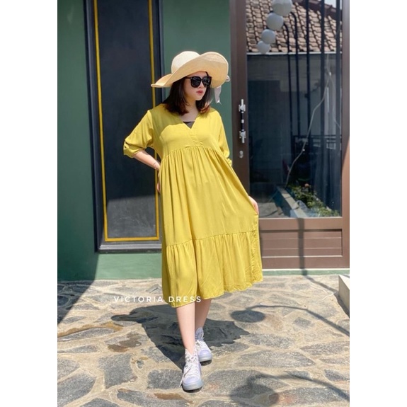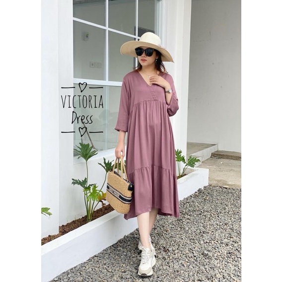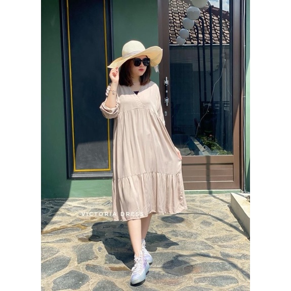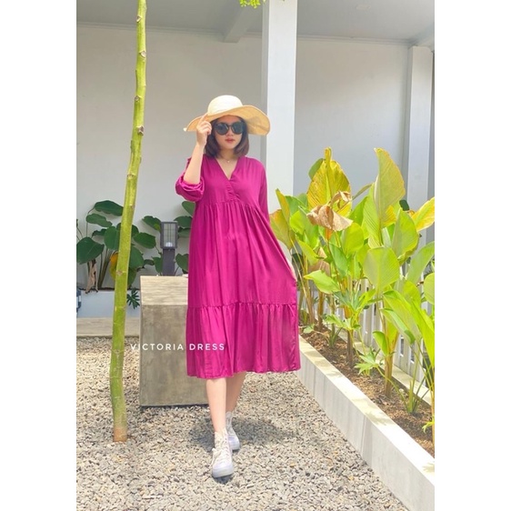 Alasan kenapa harus beli Victoria dress wanita /ootd midi dress/tunik rayon twill/dress/casual dress/COD/MIAZ tunik rayon sekarang