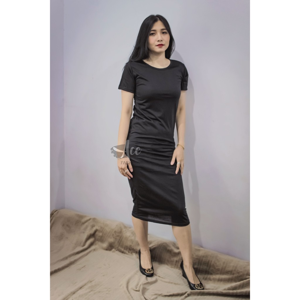 HanaFashion - Kayla Midi Dress Hitam Bodycon Split Wanita - TT034