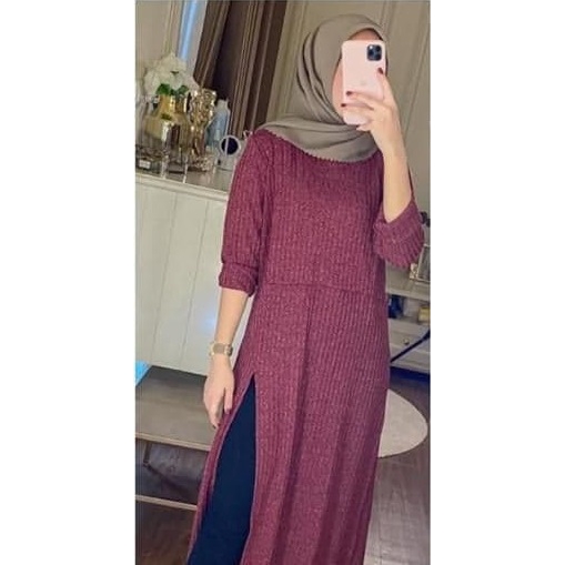 Alasan kenapa harus beli Atasan Wanita Dress Wanita Rajut Halus ANDINI DRESS slit boxy sekarang
