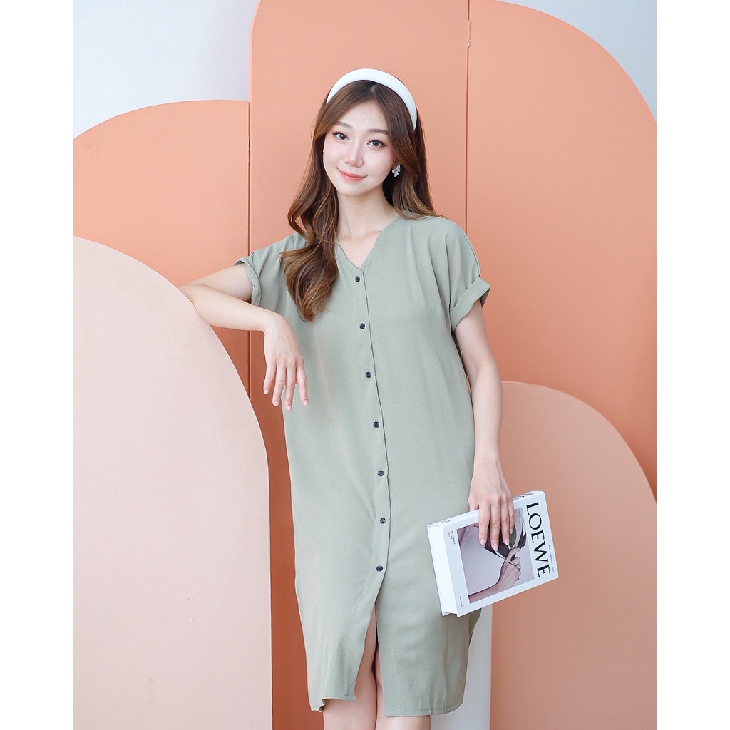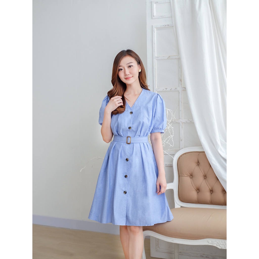 COTTONBELLS CASUAL DRESS WANITA TESSA BKK BUTTON TIED MIDI ( CV - D 3457 )