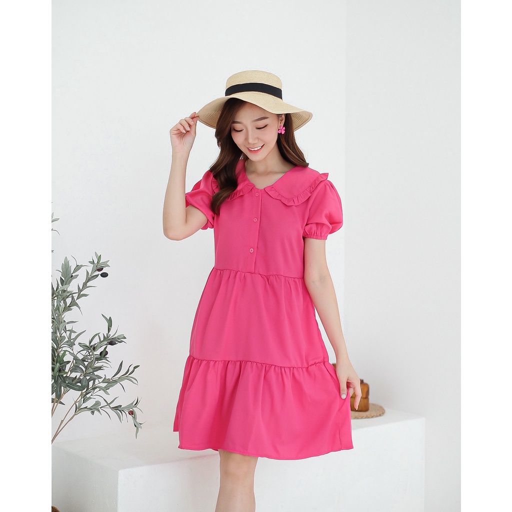 COTTONBELLS CASUAL DRESS WANITA MYRA COLLAR RUFFLE MIDI (MB - D 4145)