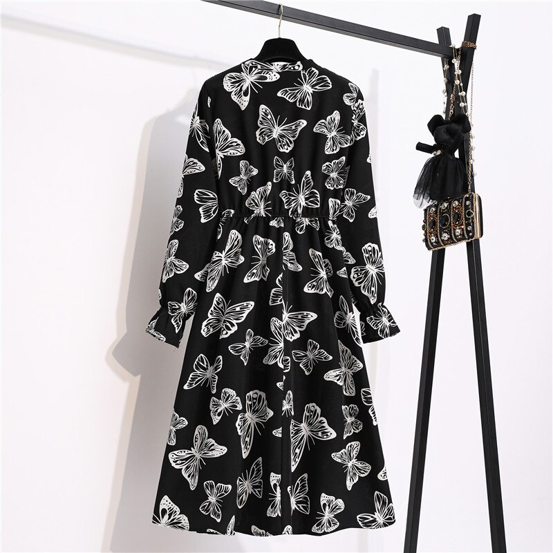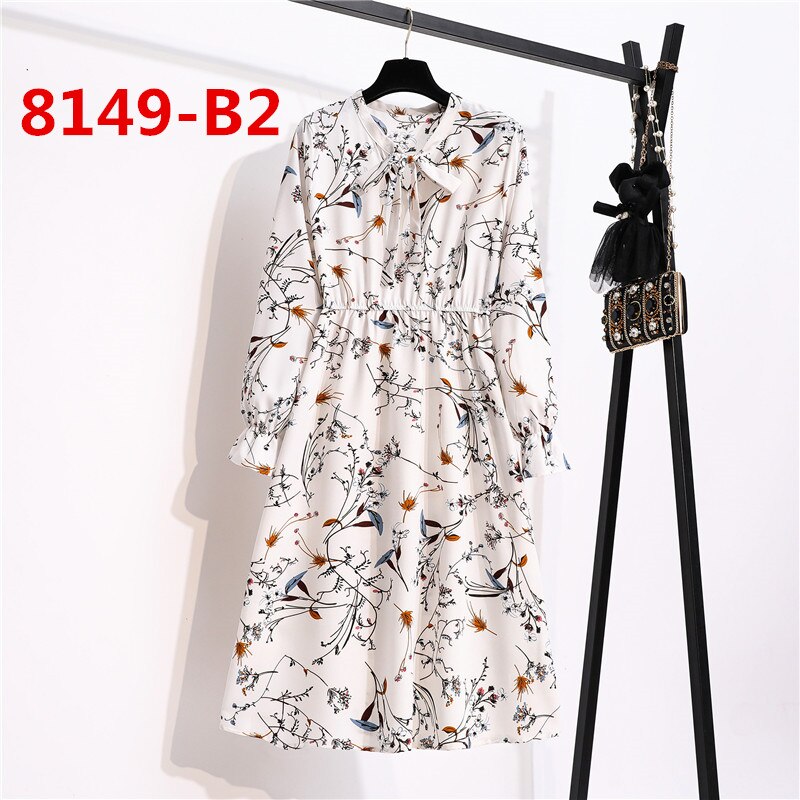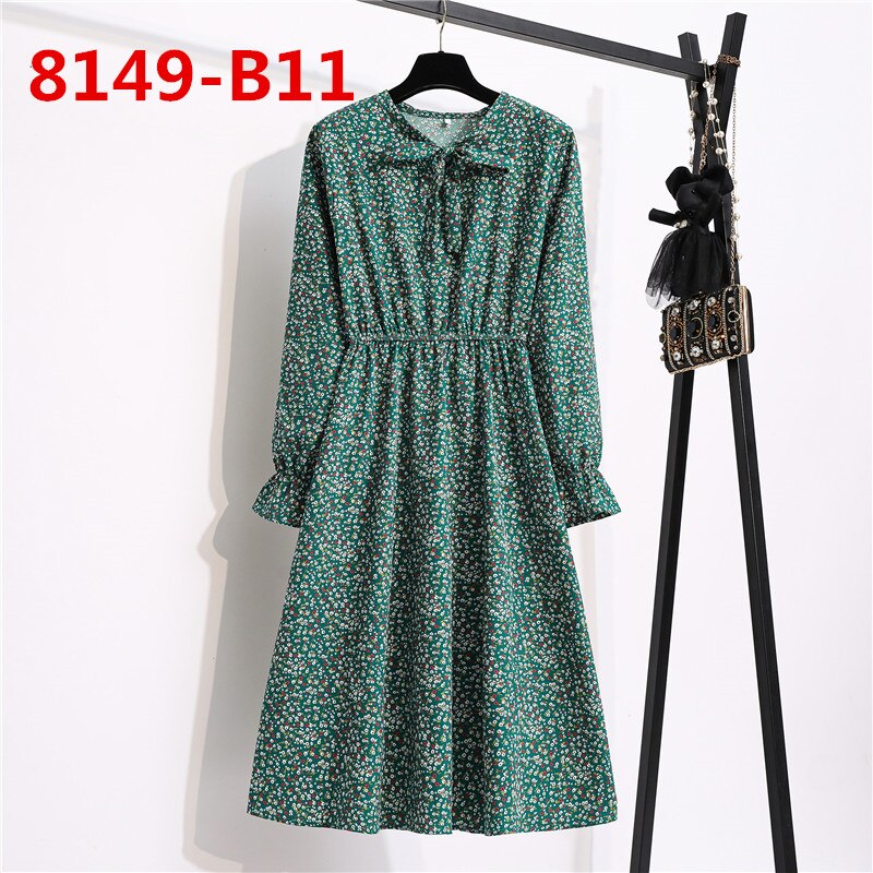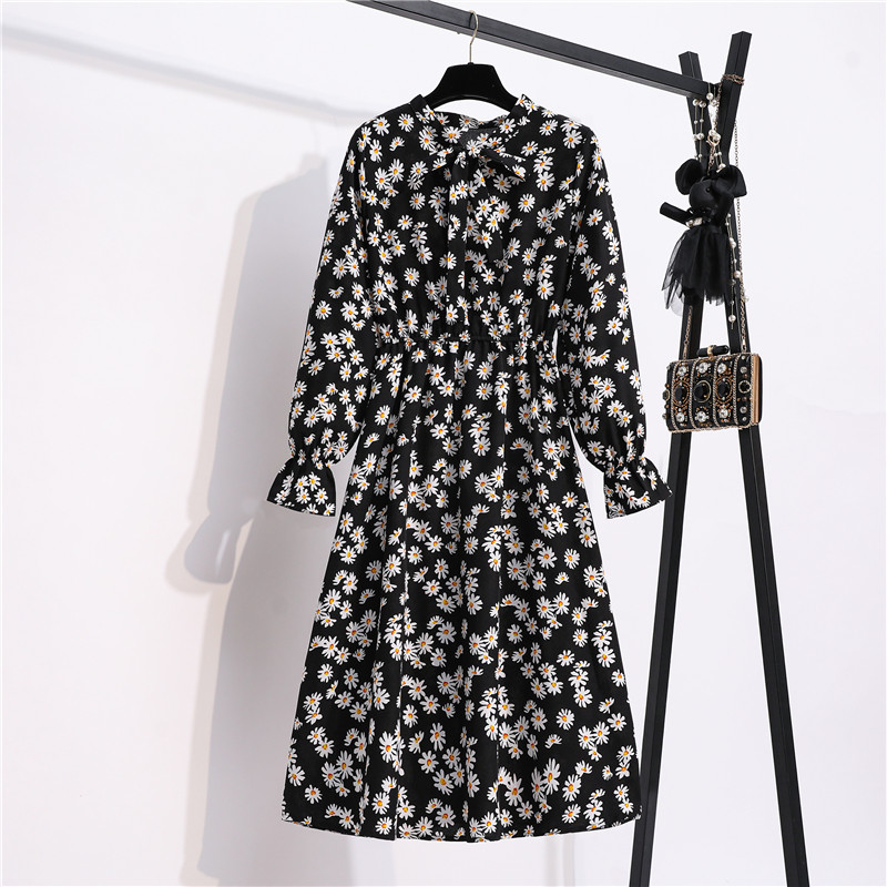 Harga Bebovizi Midi dress korea Lengan Panjang Wanita Motif Bunga Model / Vintage / Casual Bahan Sifon