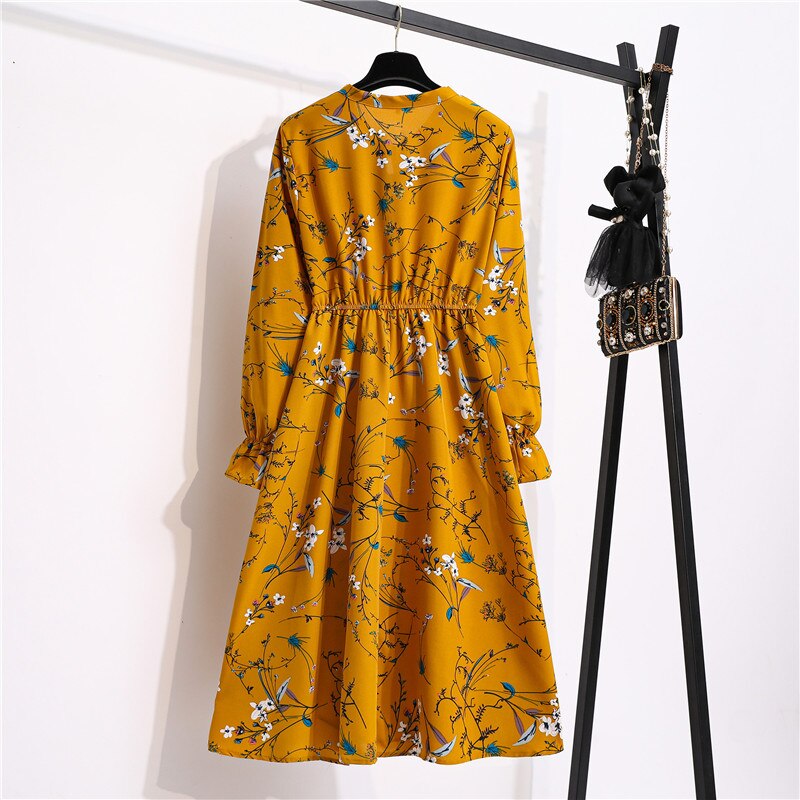 Alasan kenapa harus beli Bebovizi Midi dress korea Lengan Panjang Wanita Motif Bunga Model / Vintage / Casual Bahan Sifon sekarang