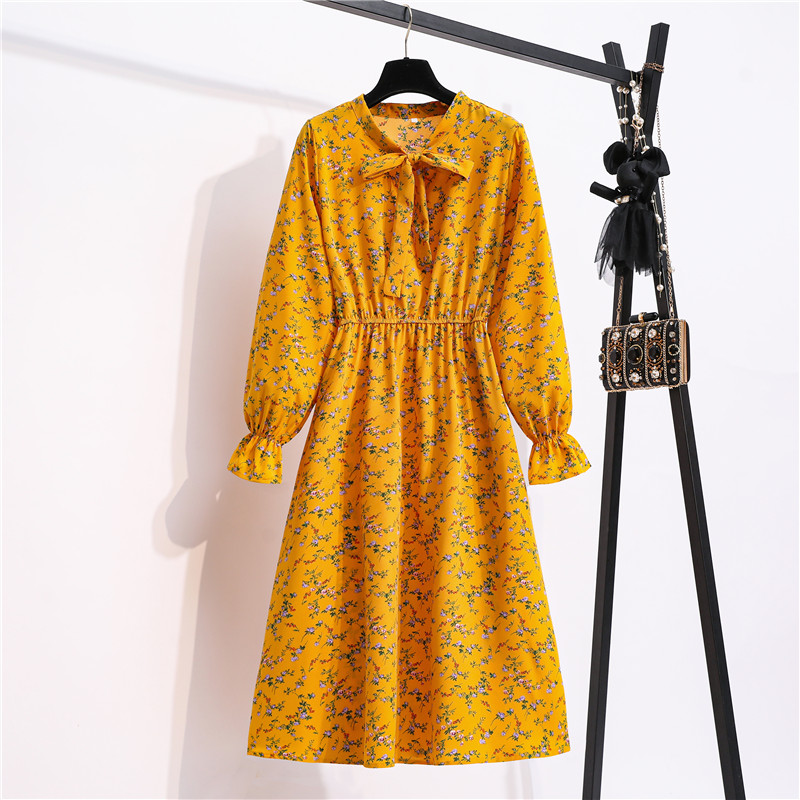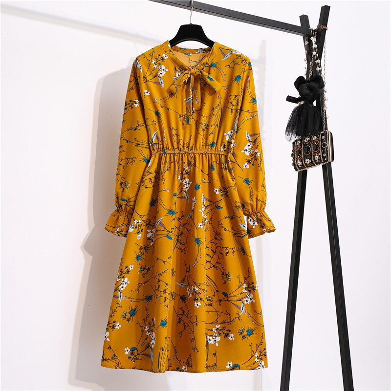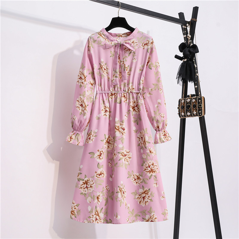 Kekurangan - Kekurangan membeli Bebovizi Midi dress korea Lengan Panjang Wanita Motif Bunga Model / Vintage / Casual Bahan Sifon di Toko ini