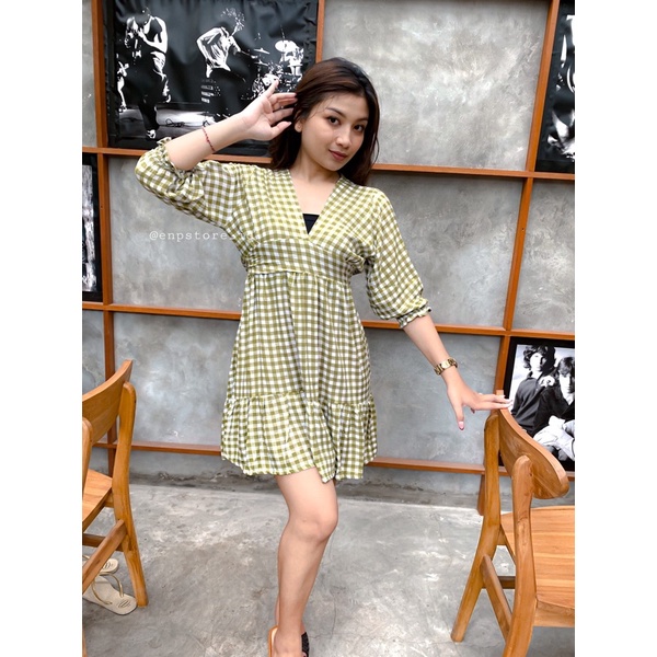 COTTONBELLS CASUAL DRESS WANITA CHERYL BUTTON RUFFLE PLAID MIDI (EO - D 4410)