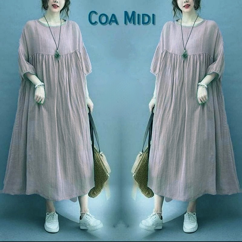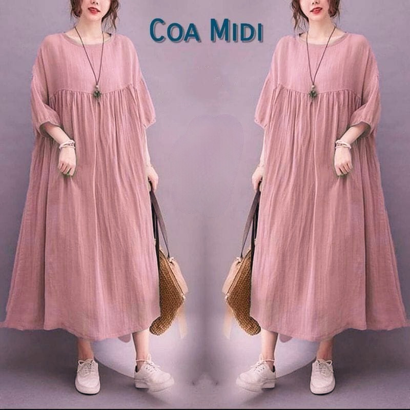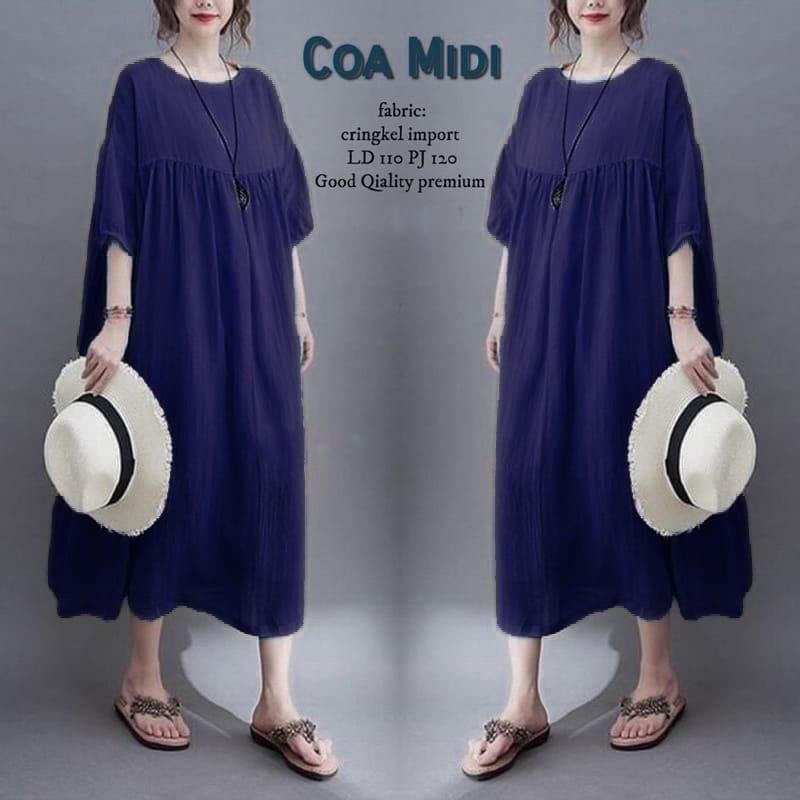 Alasan kenapa harus beli Coa Midi Dress Korea Bahan Crinkle Jumbo LD 114 Big Size sekarang