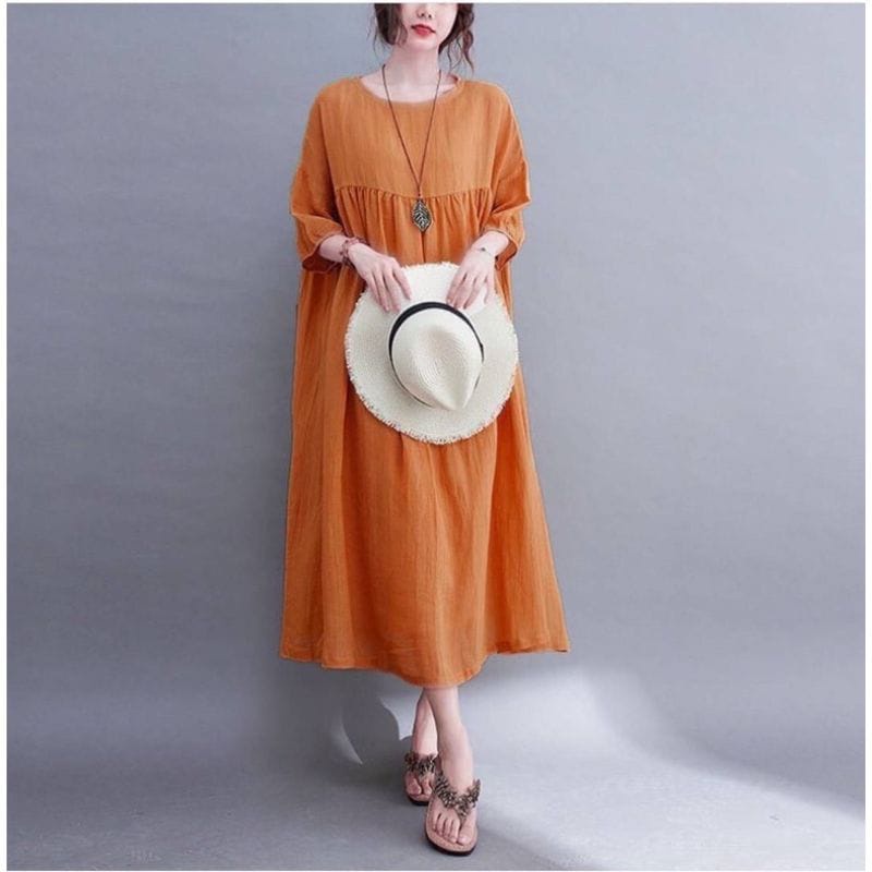 Kelebihan - Kelebihan membeli Coa Midi Dress Korea Bahan Crinkle Jumbo LD 114 Big Size di Toko ini