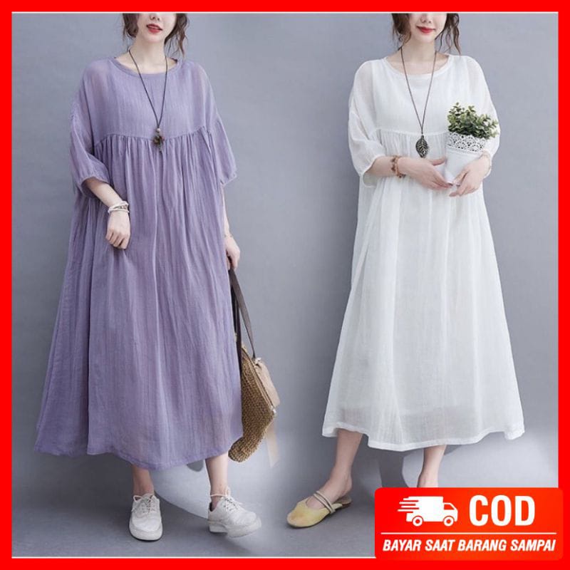 Kekurangan - Kekurangan membeli Coa Midi Dress Korea Bahan Crinkle Jumbo LD 114 Big Size di Toko ini