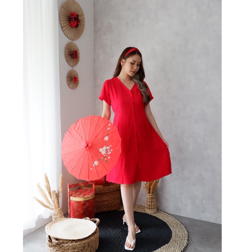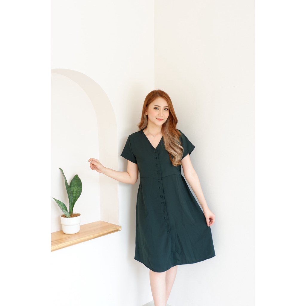 Kekurangan - Kekurangan membeli COTTONBELLS CASUAL DRESS WANITA LARA BUTTON MIDI (CV - D 4182) di Toko ini