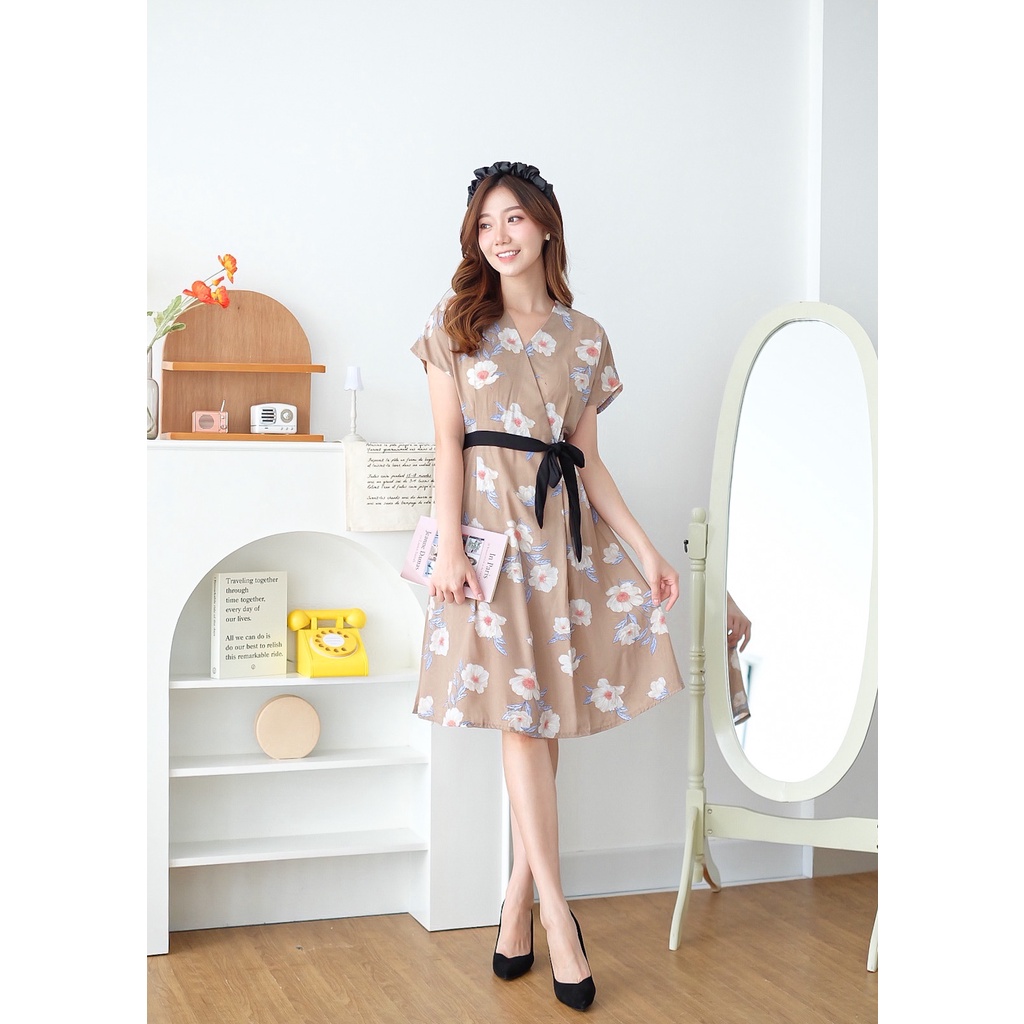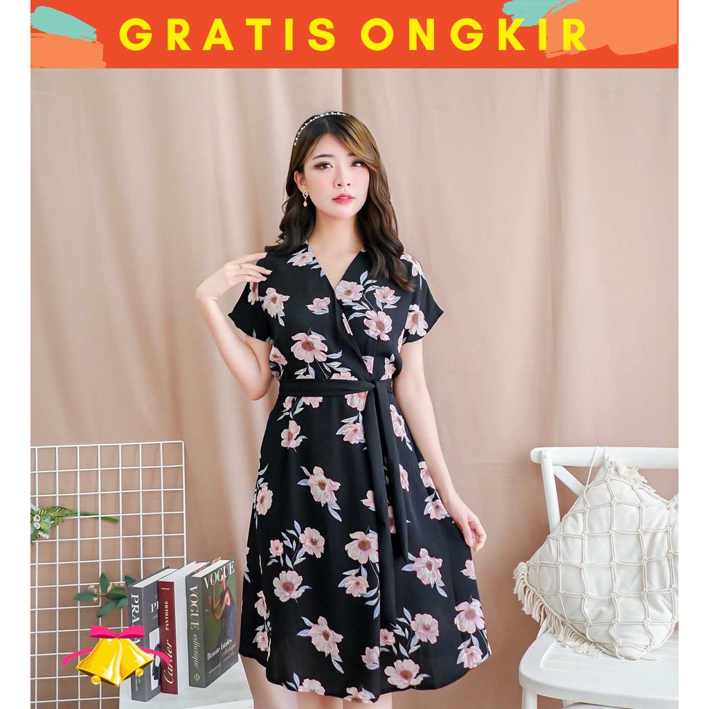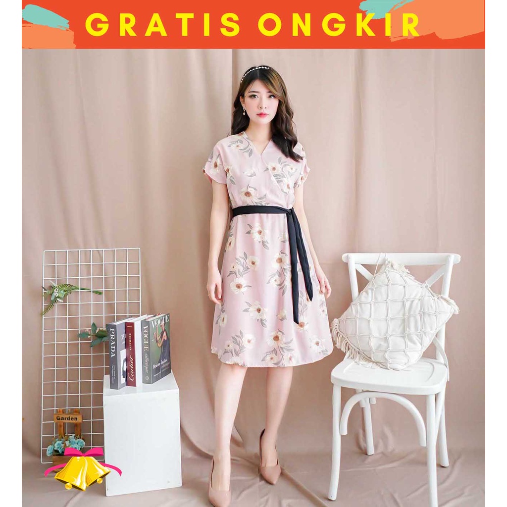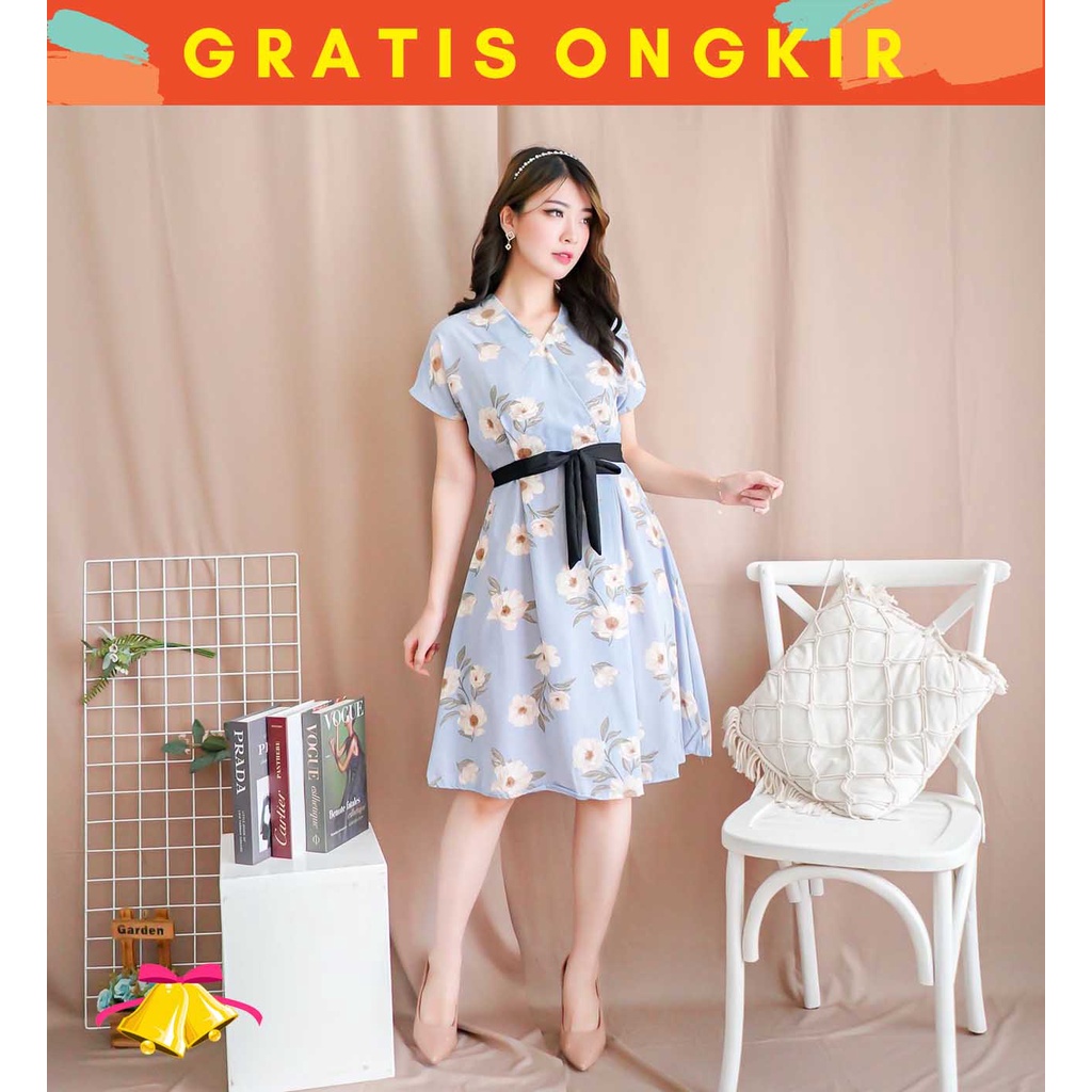 Alasan kenapa harus beli COTTONBELLS CASUAL DRESS WANITA MARCIA FLORAL PLAID V TIED MIDI (CV - D 4234) sekarang