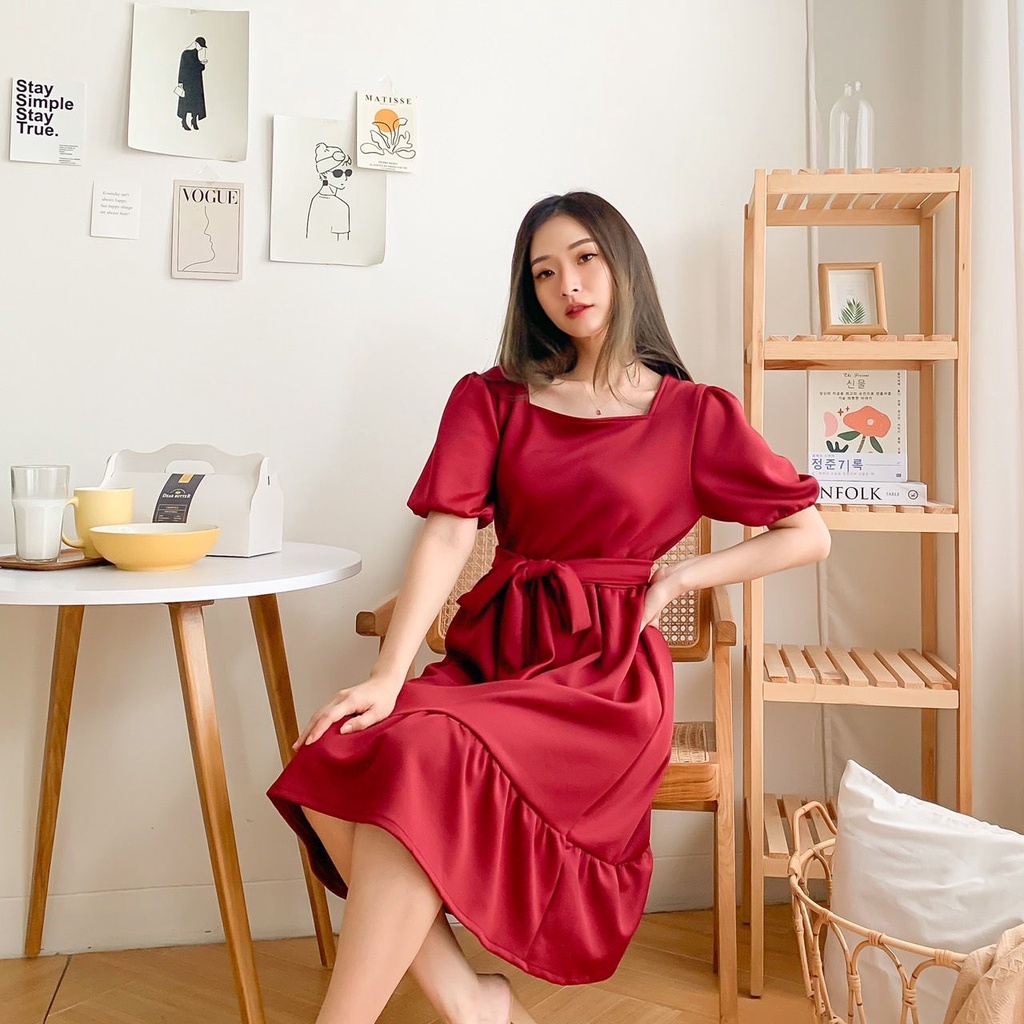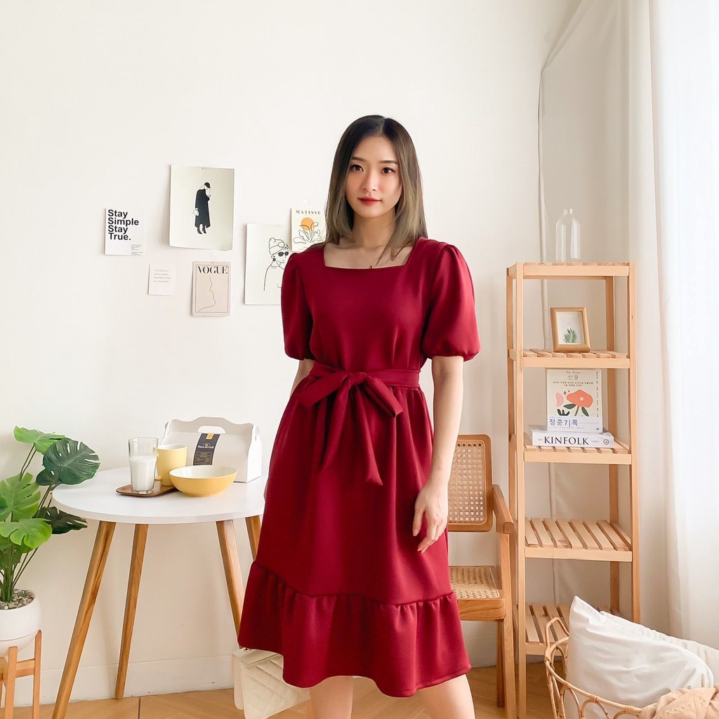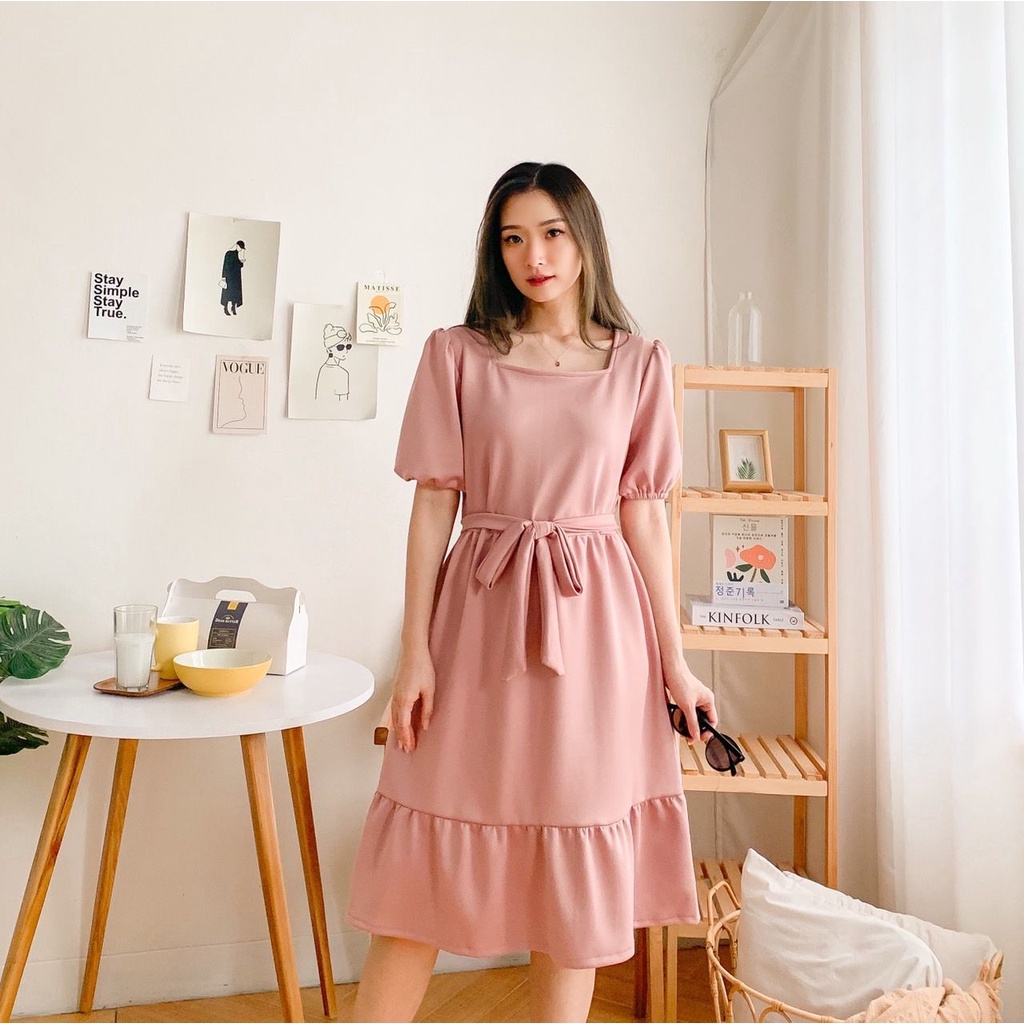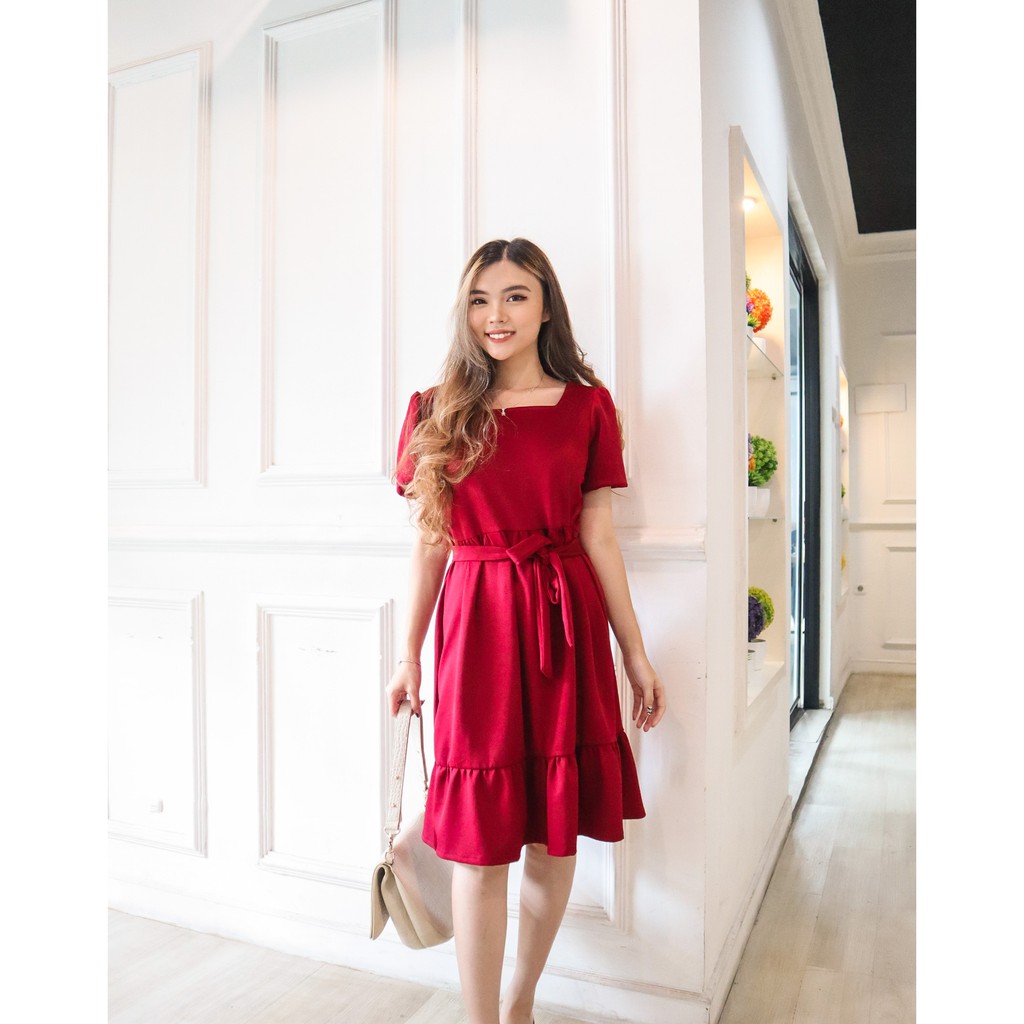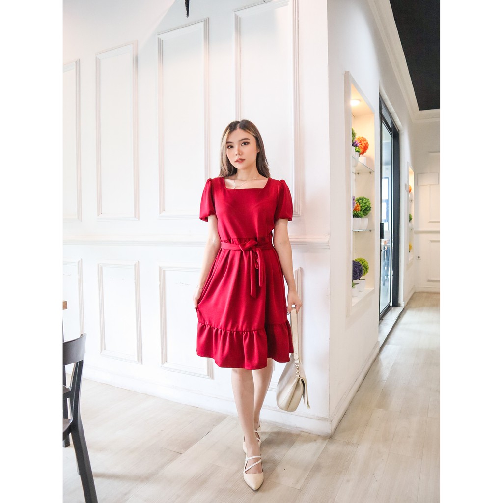 Harga COTTONBELLS CASUAL DRESS WANITA EMMA RUFFLE SQUARE COMFY MIDI (CV - D 3622)