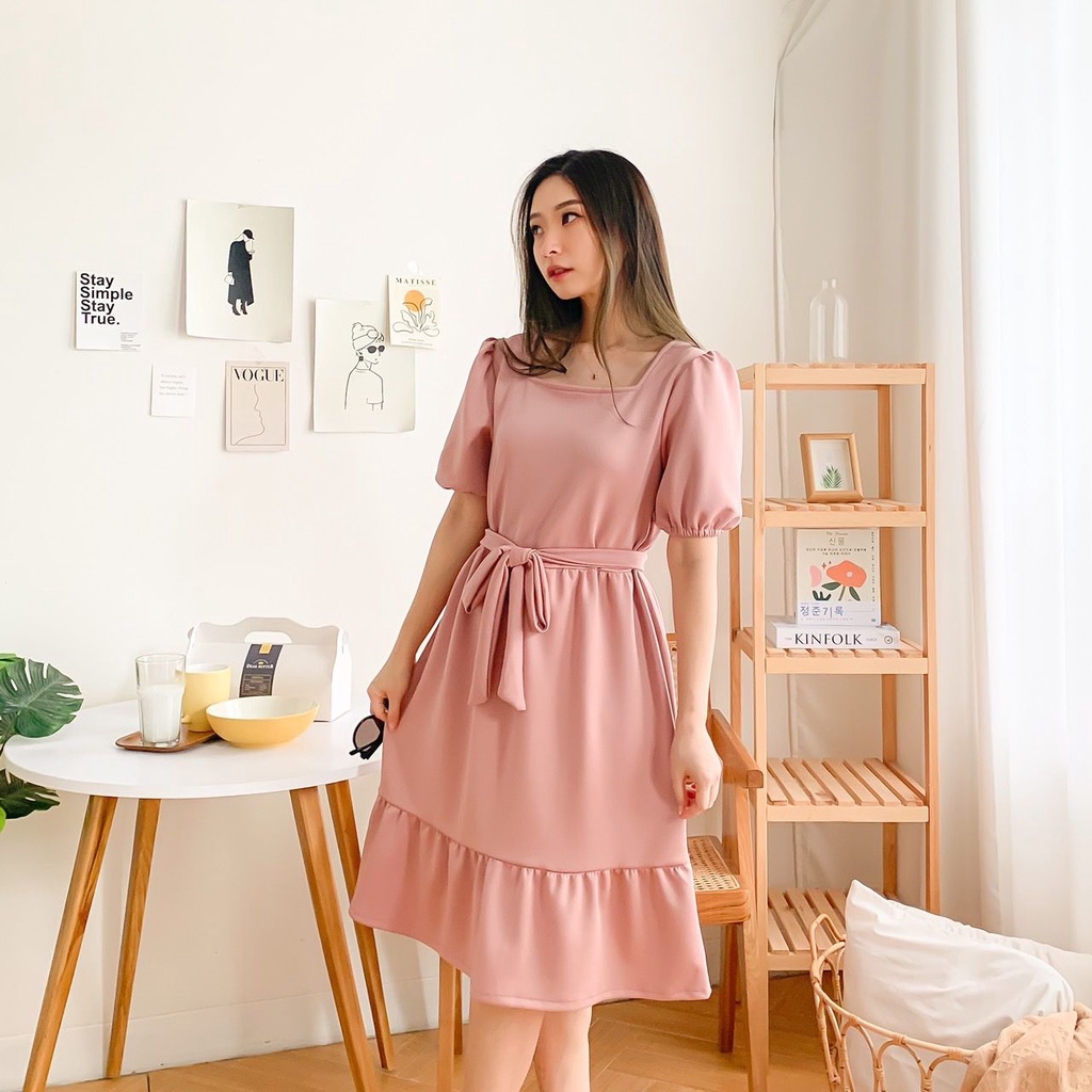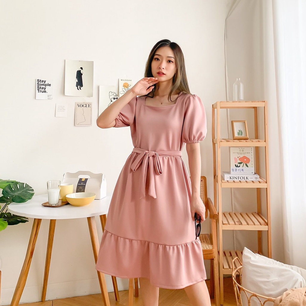 Alasan kenapa harus beli COTTONBELLS CASUAL DRESS WANITA EMMA RUFFLE SQUARE COMFY MIDI (CV - D 3622) sekarang