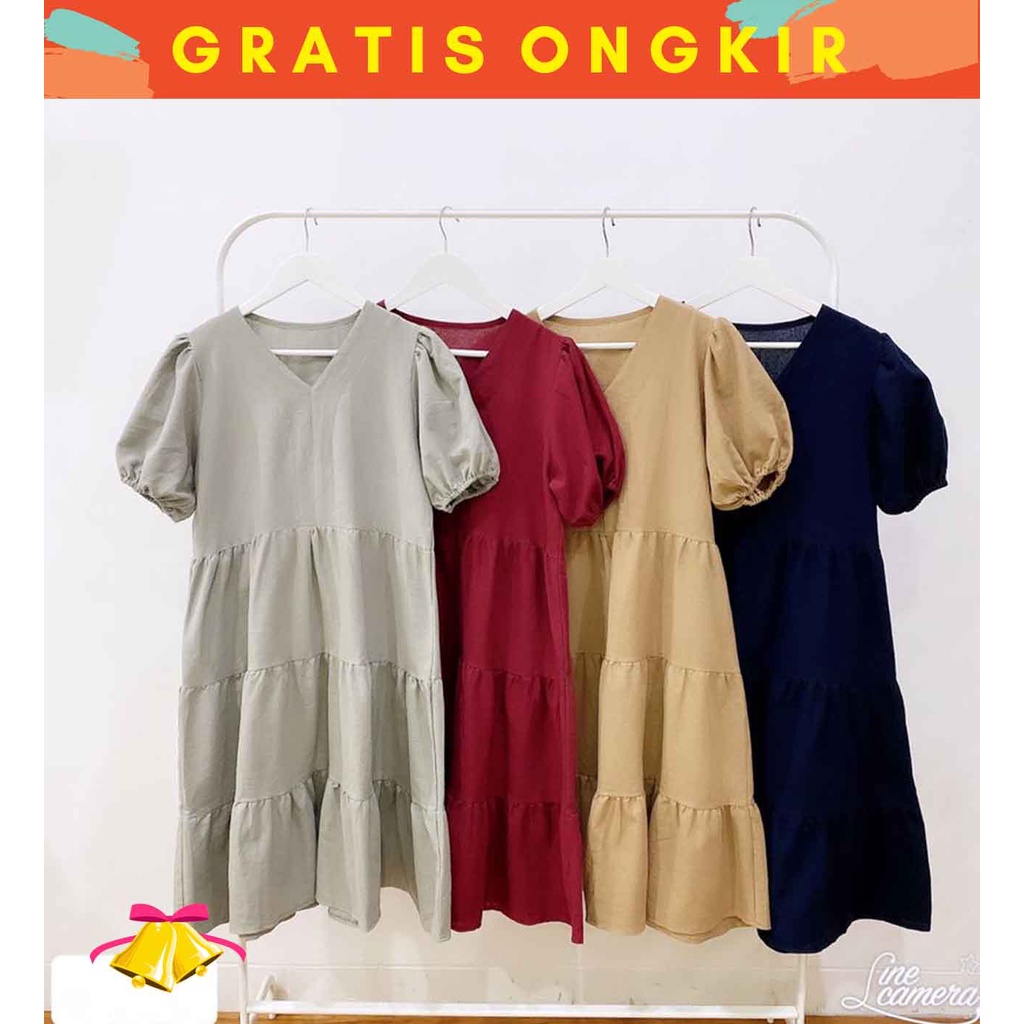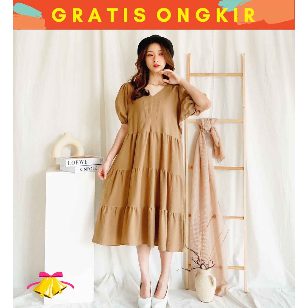 Alasan kenapa harus beli COTTONBELLS CASUAL DRESS WANITA JENIA RUFFLE PLAID V TIED MIDI (BS - D 4046) sekarang