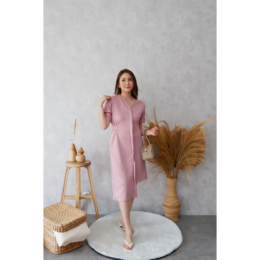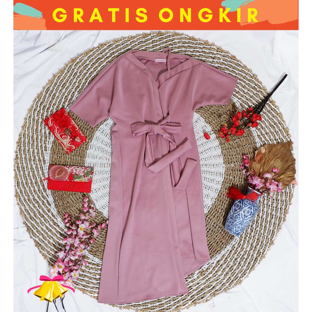 ❣ SPECIAL PRICE ♡ PREMIUM ♡ REAL PIC ! NATHANIA VINTAGE KIMONO V-NECK SLING PLAIN MIDI DRESS